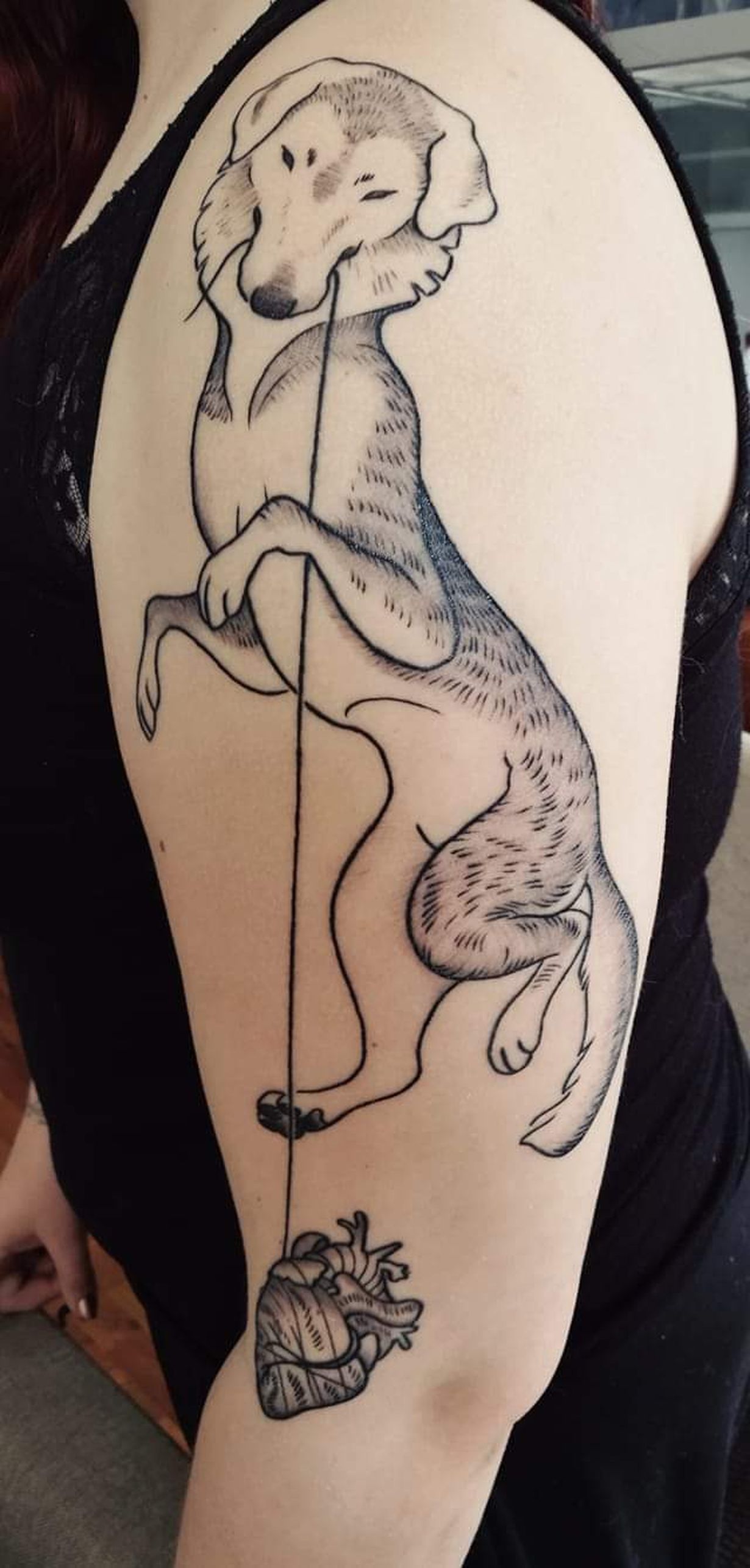Roxy- koirallani oli sydänvika, jonka korjausleikkaukseen se menehtyi kolmivuotiaana. Tatuoinnissa Roxyn sydän on ehjä, ja se pysyy aina lähelläni.