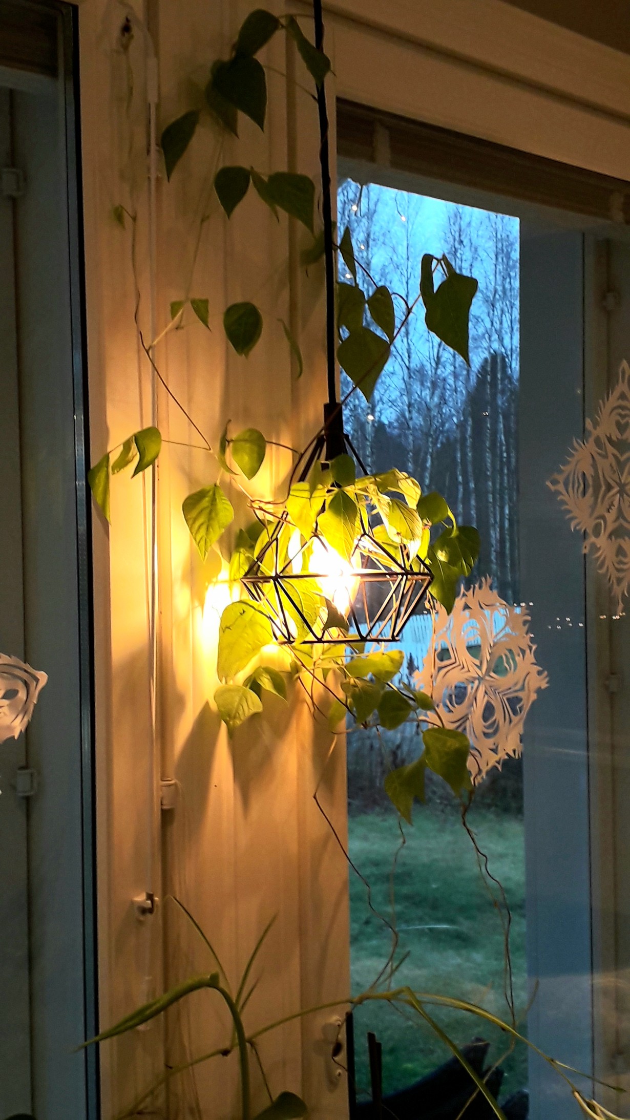 Tämän hetken rakkain huonekasvi on ruusupapu jonka tytär kasvatti viime keväänä koulussa. Kukkiikin välillä mutta papuja ei ole vielä tullut.