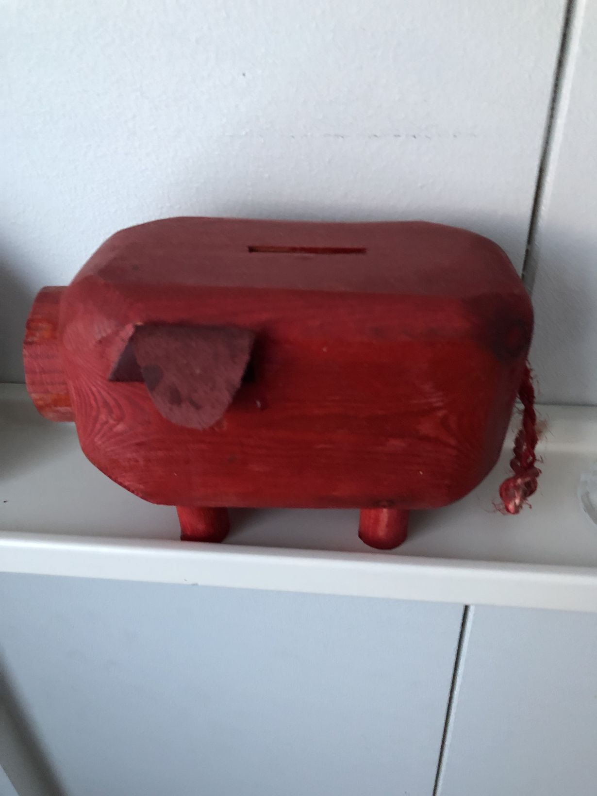 Säästöpossun tehnyt poikani ala-asteella. Mallikas työ, joka yllättävää kyllä on alku hänen nykyiselle ammatille. Myöskin kuvastaa säästämisen tärkeyttä ja on lisäksi kaunis ja hyvän värinen.