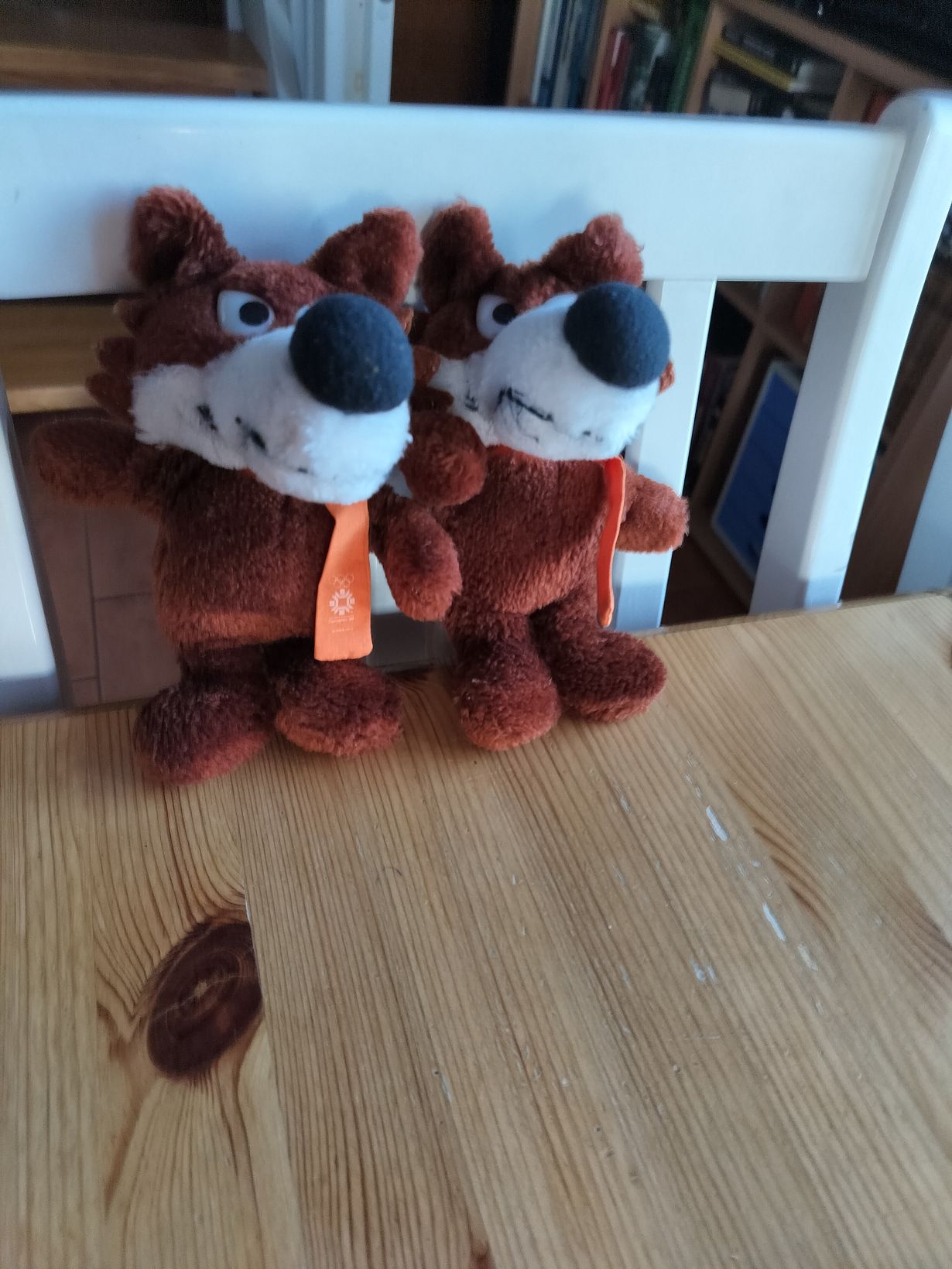 Nämä Sarajevon olympialaisten, 1984, maskotti, on ostettu Helsingin Rautatieasemalta. On Vuchko susi