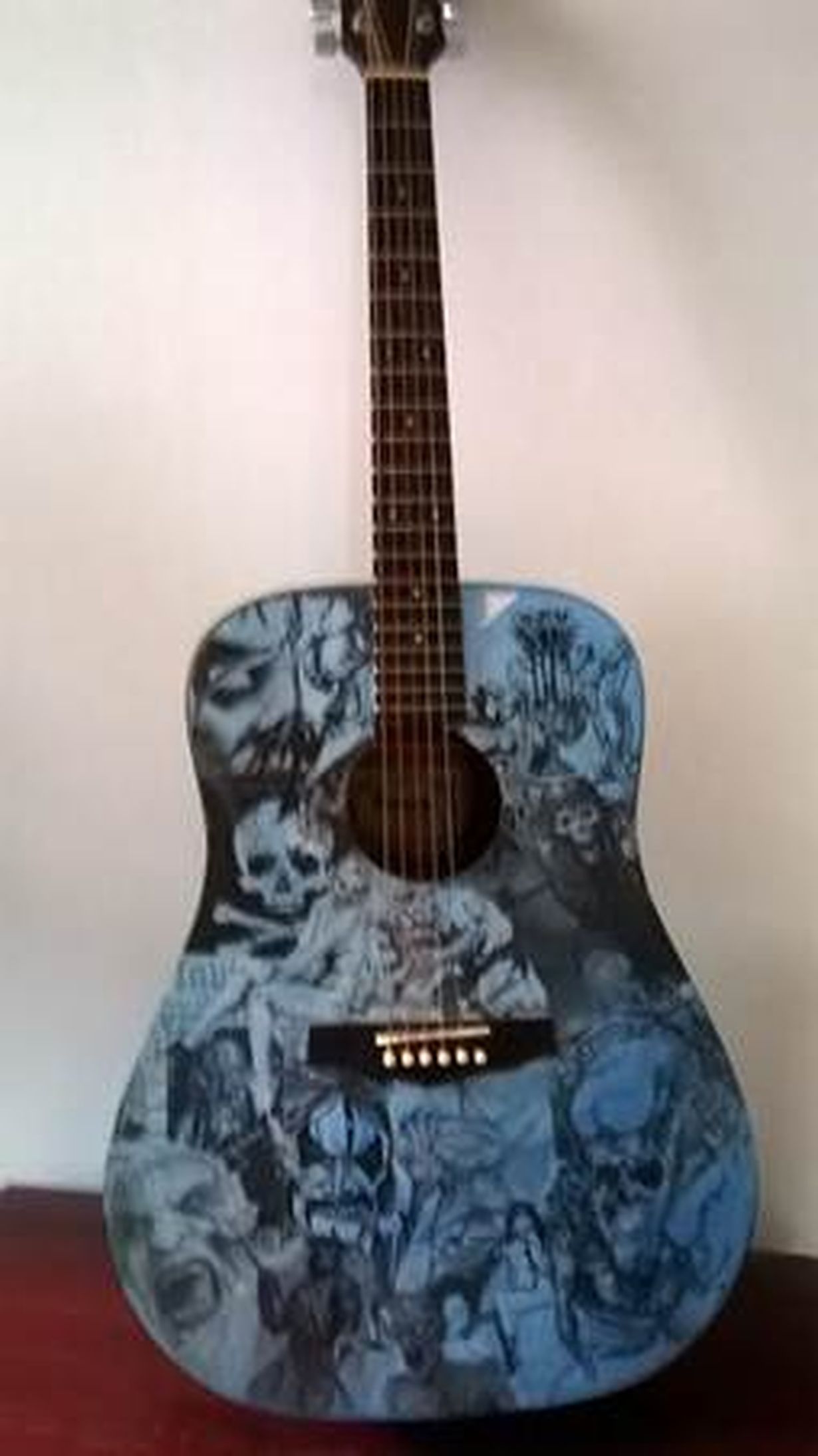 Lähes 30 vuotta sitten teini-ikään tullut poikani halusi ostaa säästämillään rahoilla kitaran itselleen. Hän oli myös ahkera sarjakuvien piirtäjä. Kuvia julkaistiin maakunnan lehdessä nuorisopalstalla. Sarjakuvapiirtäjänä myös kitara sai persoonallisen kuvioinnin. Hän harjoitteli ahkerasti ja kävi myös keikoilla oman bändin kanssa säestäen laulujaan kitaralla.