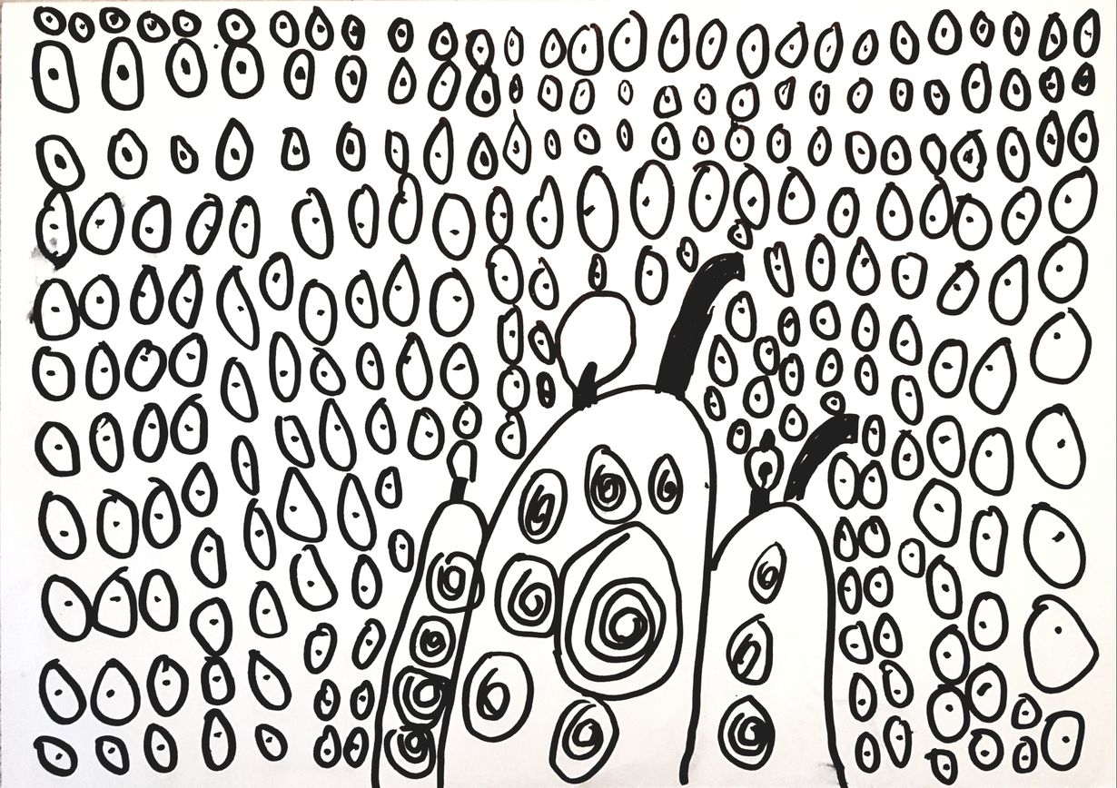 Sata nappinen kone on poikani iltapäiväkerhossa tekemä piirustus hänen koulu-uransa alusta parin vuoden takaa. Minusta tämä on yhtä hieno kuin kauneimmat Marimekko -kuosit.
