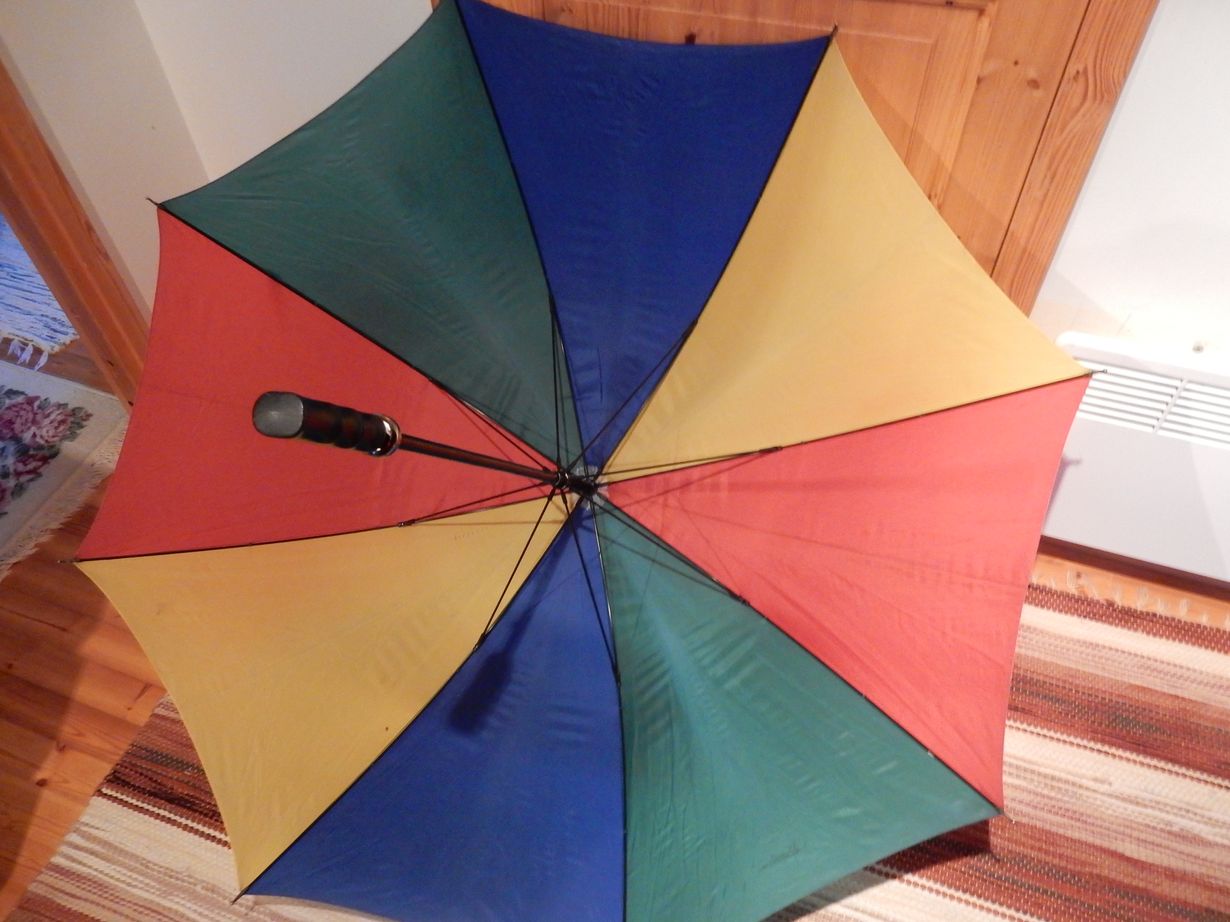 Mieheni oli linja-autonkuljettaja ja joku oli unohtanut sateenvarjonsa autoon.Kukaan ei kysellyt,joten se jäi meille.Mukavan iso.Lähes samanlaisen tuttava antoi pikku avusta.niinpä meillä on molemmilla isot varjot kummallakin.