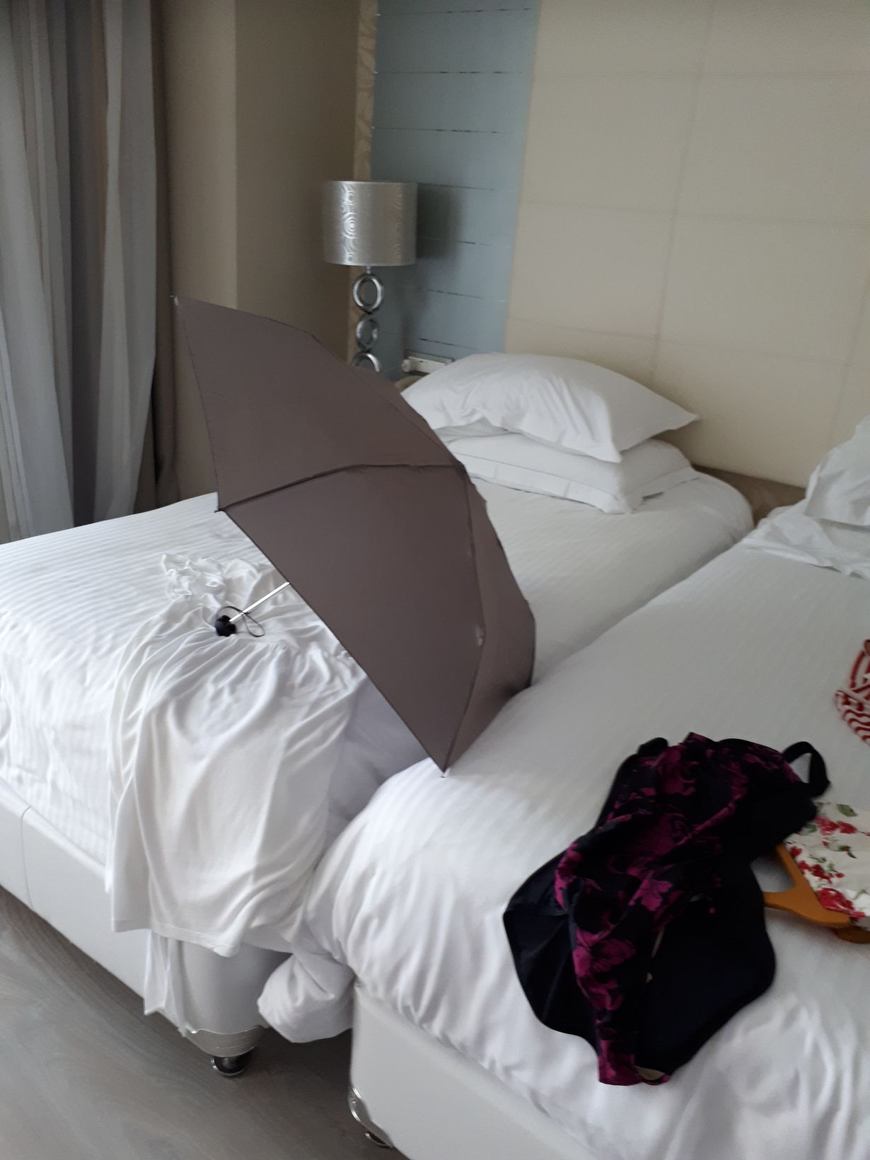 Olin tyttäreni perheen kanssa lomamatkalla Rodoksella. Mukana oli mm. viimeinen Kodin kuvalehti ja sateenvarjo, koska lähtiessä säätiedotus näytti viikolle ainoastaan yhtä aurinkoista päivää. Sateenvarjoa ei tarvittu, sillä jokainen lomapäivä oli aurinkoinen. Uimapuvulle oli käyttöä ja sain nauttia 2 vuotiaan tyttärentyttären kanssa uimisesta. Lehteä lukiessa ajattelin ikuistaa sateenvarjoni hotellihuoneessa, sillä lomakin on ihanaa arkea.