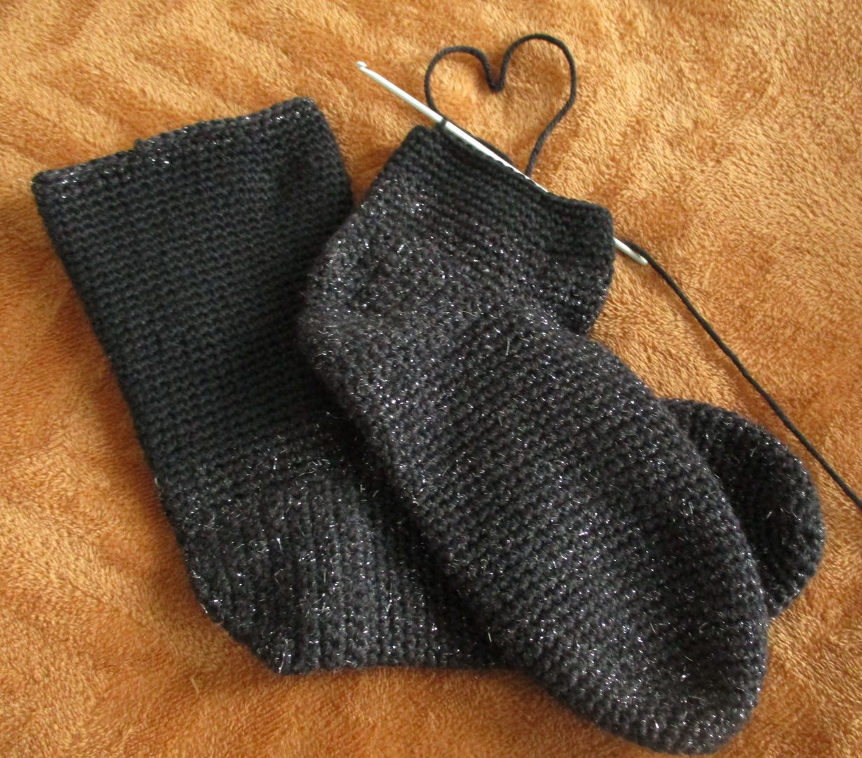 Tämän vuoden sukka-saldoni päättyy pian ja viimeinen pari on kohta valmis. Lämpöiset virkatut sukat menevät joululahjaksi Äidilleni, joka pitää tummemmista väreistä.