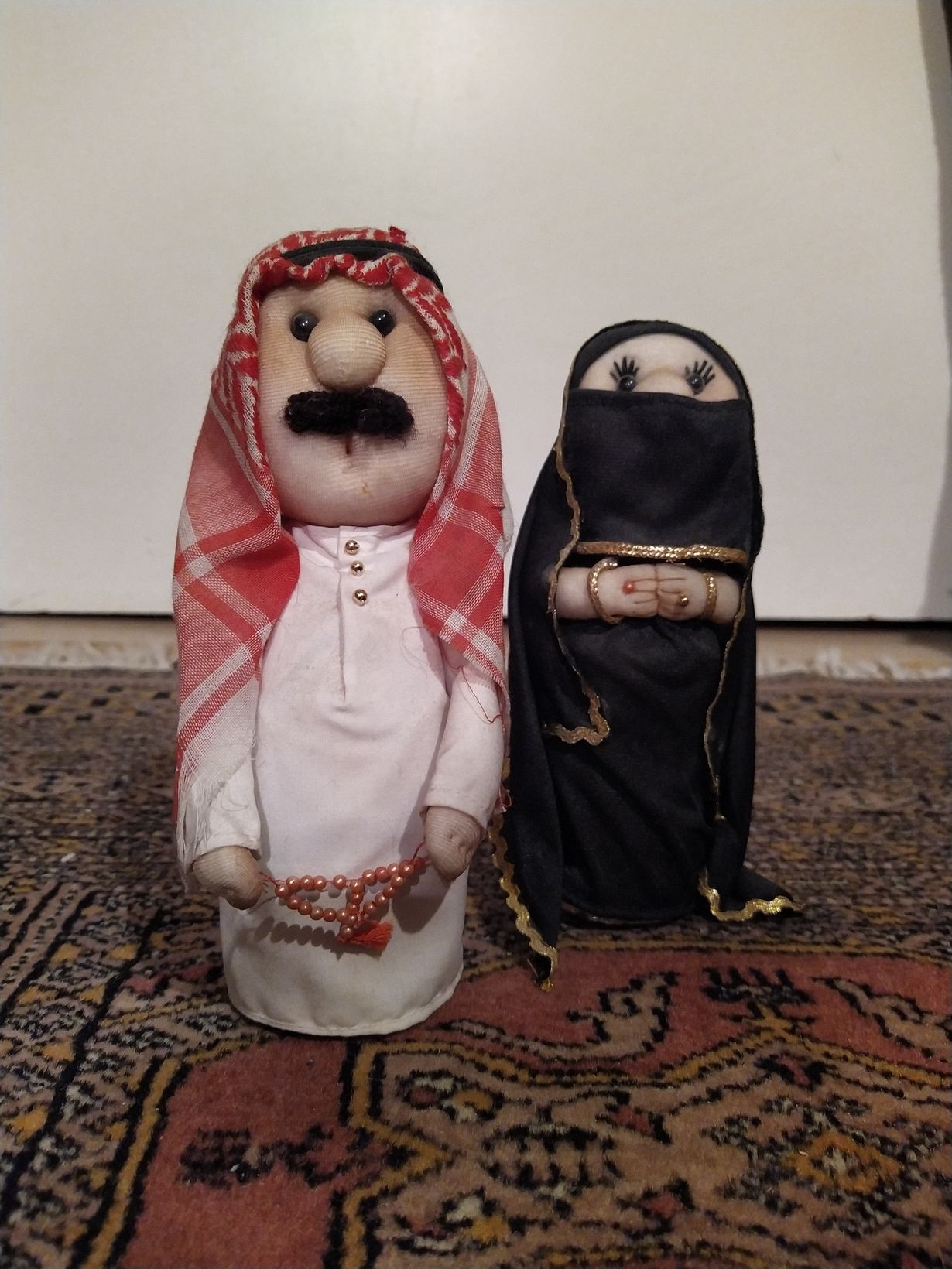 Asuimme Jeddassa 1989-90. Compoundin ulkopuolella käytin abayaa, päätä en peittänyt. Miehen thoben (pitkä paita) tein vasta Suomessa, huivi, nahkapanta ja molemmille sandaalit ostettiin siellä. Joku pojistamme on käyttänyt asua naamiaisissa.
