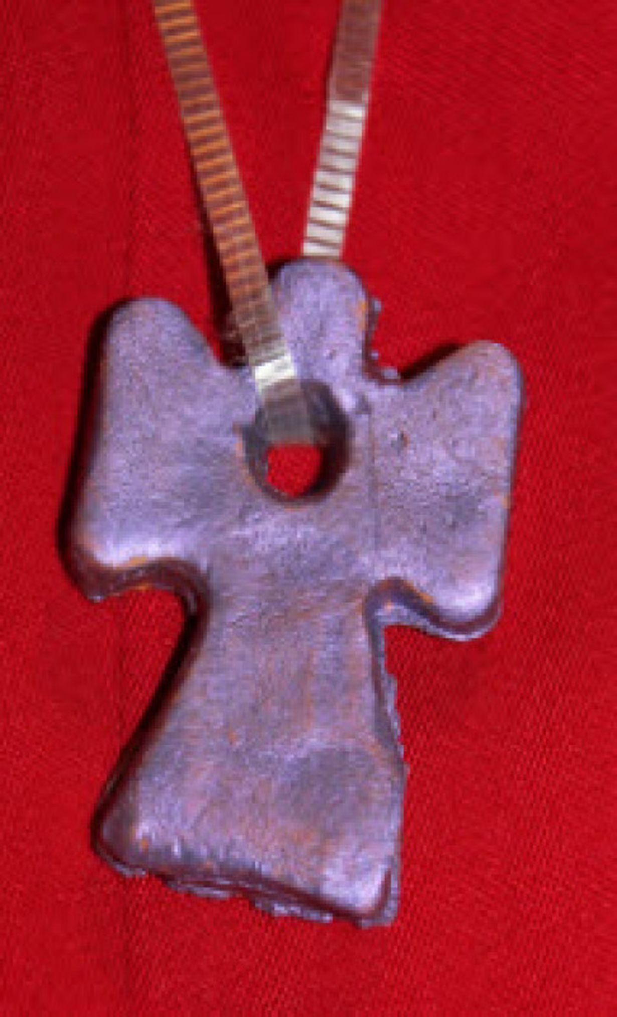 Poikani päivähoidossa askartelema savinen enkeli, joulukuusenkoriste. Vaikka koriste on melko pieni (n 4 cm kork.) - se on aika painava. Joulukuusen oksa painuu enkelin painosta, mutta sillä ei ole niin merkitystä.