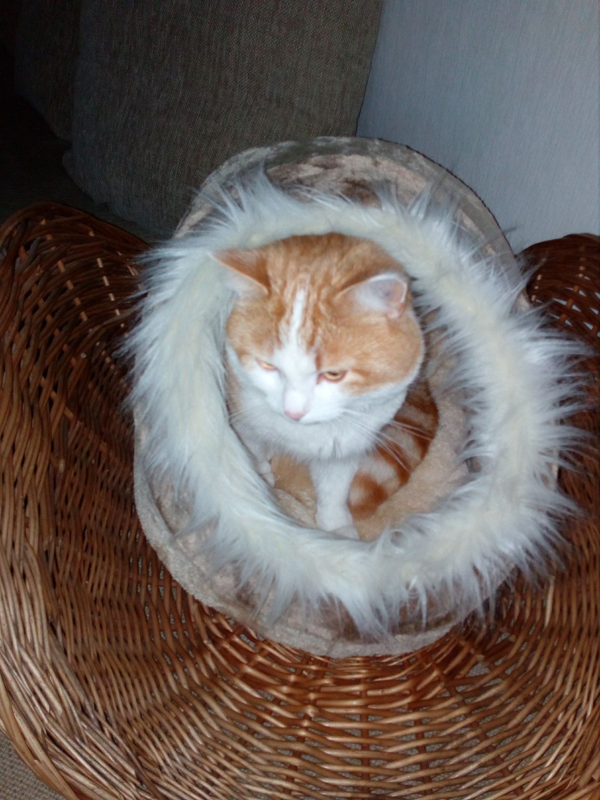 Kissamme värinen ja näköinen ja hän ihastui siihen hetimiten. Nukkuu siellä sikeimmät unensa ?