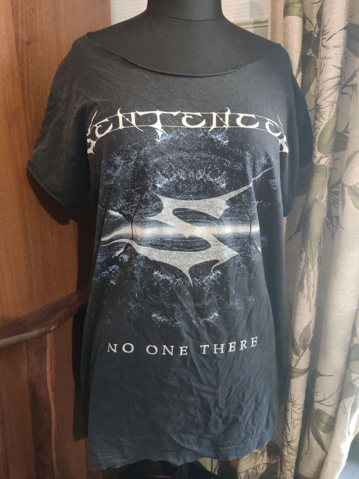 Tämä paljon rakastettu Sentenced-paita löytyi aikoinaan kierrätyskeskuksesta ja tuunailin sitä vähän leikkaamalla hihoja ja pääntietä.