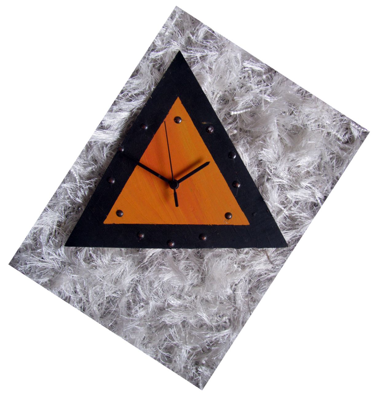 Poikamme Jiri teki tämän varmatyylisen kellon ollessaan 10 ikävuoden korvilla. Iloinen kolmiokello ohjaa olohuoneemme vilkasta liikennettä paraatipaikalta.