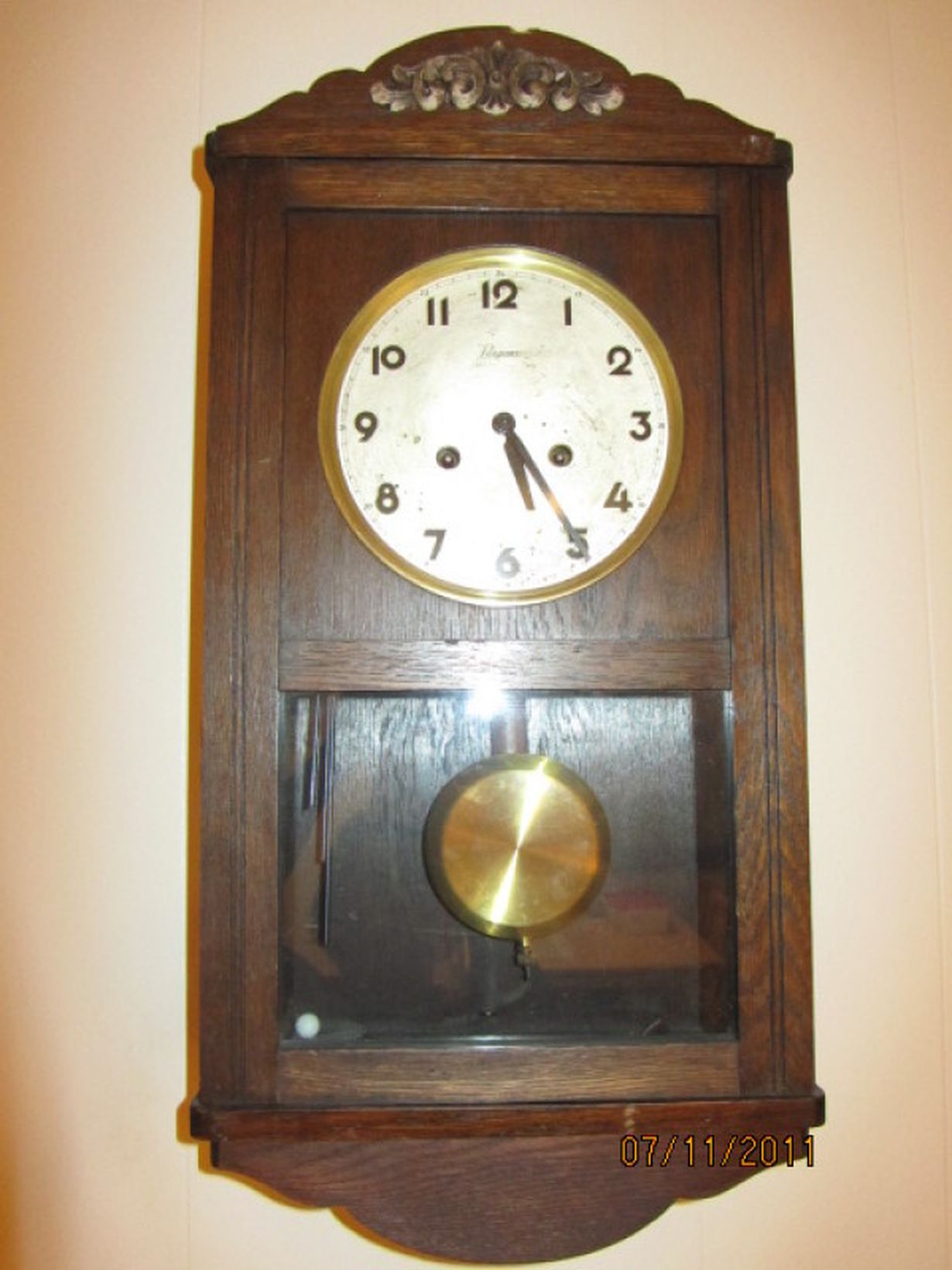 Seinäkello on peräisin 1940-luvun lopulta, jonka isoisäni on silloin ostanut Mikkelistä. Se on ollut lapsuuteni kodin seinällä ja siirtynyt perintänä 1976 oman kotini seinälle.