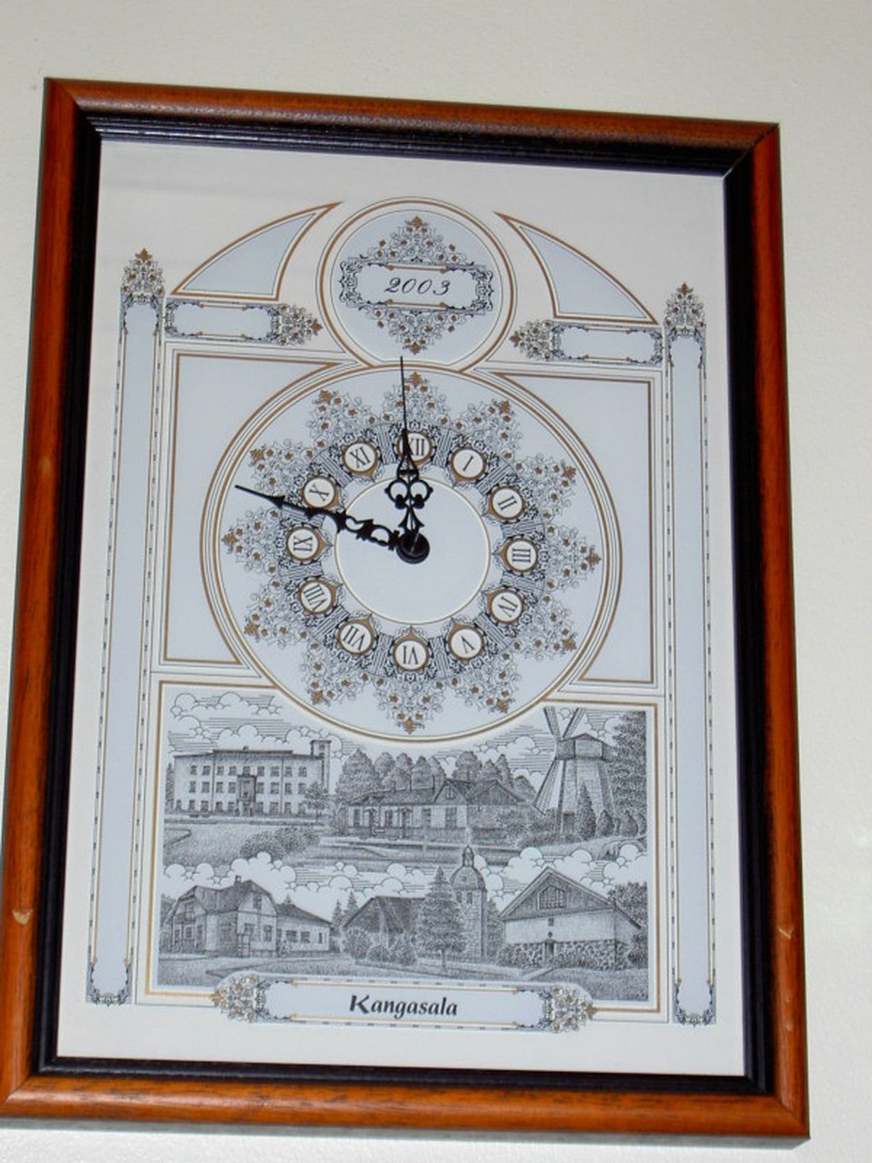Tämä ihana arki: seinäkello Seinäkello 16.11.2011 klo 14:52 Kellossa on kuvattu eri rakennuskohteita Kangasalta. MM. kirkko, nuorisoseuran Pirtti, museo
