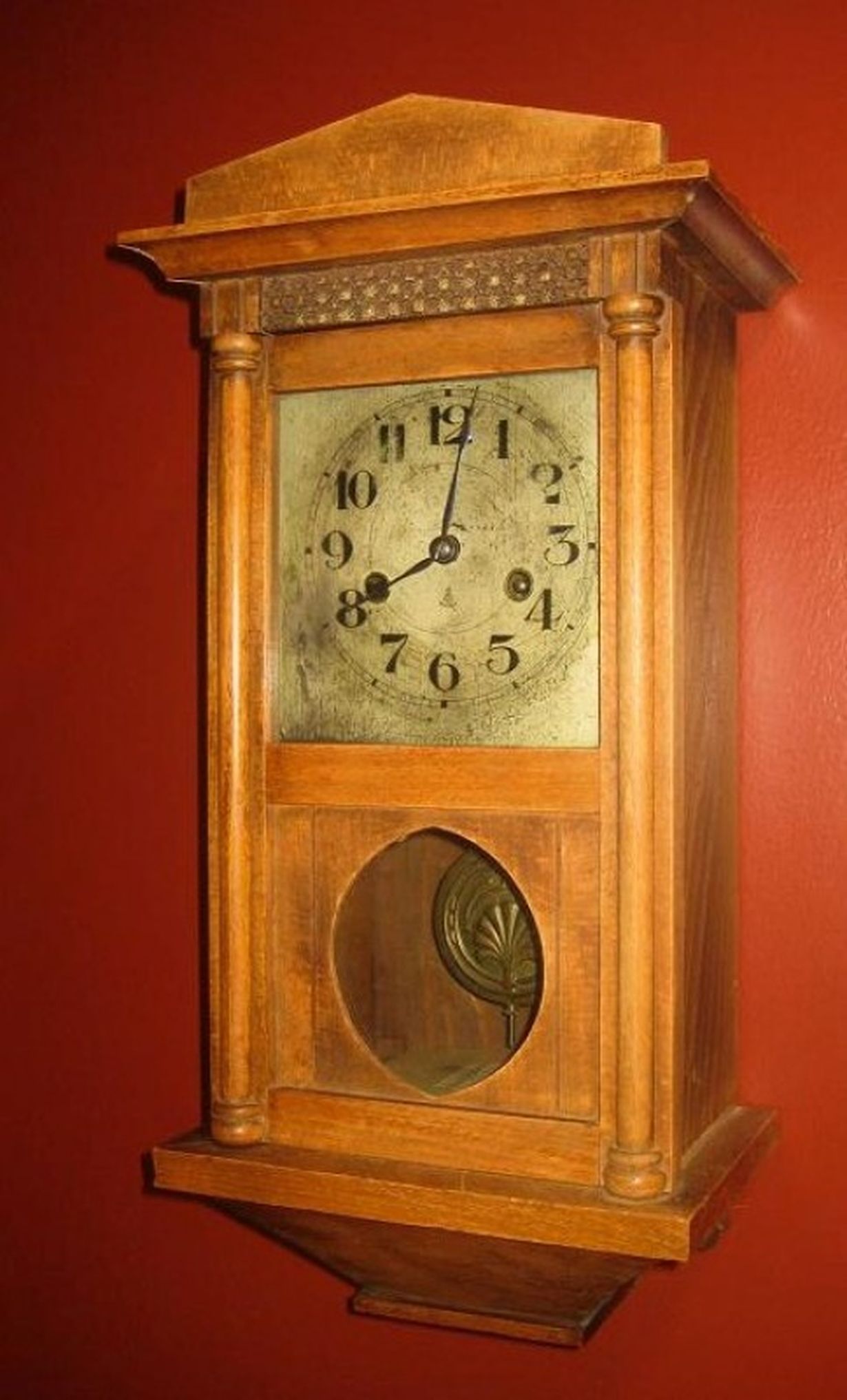 Ukkini, joka oli sekatavarakauppias, osti seinäkellon huutokaupasta 1940 - 1950 luvulla. Kello on tehty 1800 - 1900-luvun vaihteessa. Nyt kello on yritykseni neuvotteluhuoneen seinällä. Kello on merkiltään Becker.