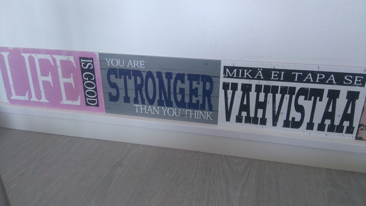 Kuuden vuoden taistelu elämässä poikani poikani kanssa huumehelvetin jälkeen. Kuuteen vuoteen en nähnyt taivaan sineä, pilviä, kesää,aurinkoa enkä lunta. Selviytyminen tästä ajasta, voitto huumeista, tie omaan itseen. Näen elämän selvemmin nyt kuin koskaan. Tämä vahvisti minua.