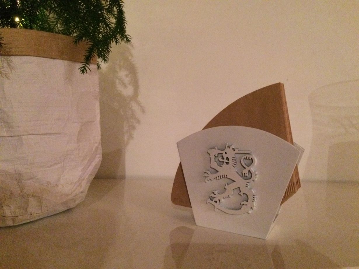 Tämän servettitelineen on tehnyt serkkuni Juha Luhtaniemi Vuolijoelta.