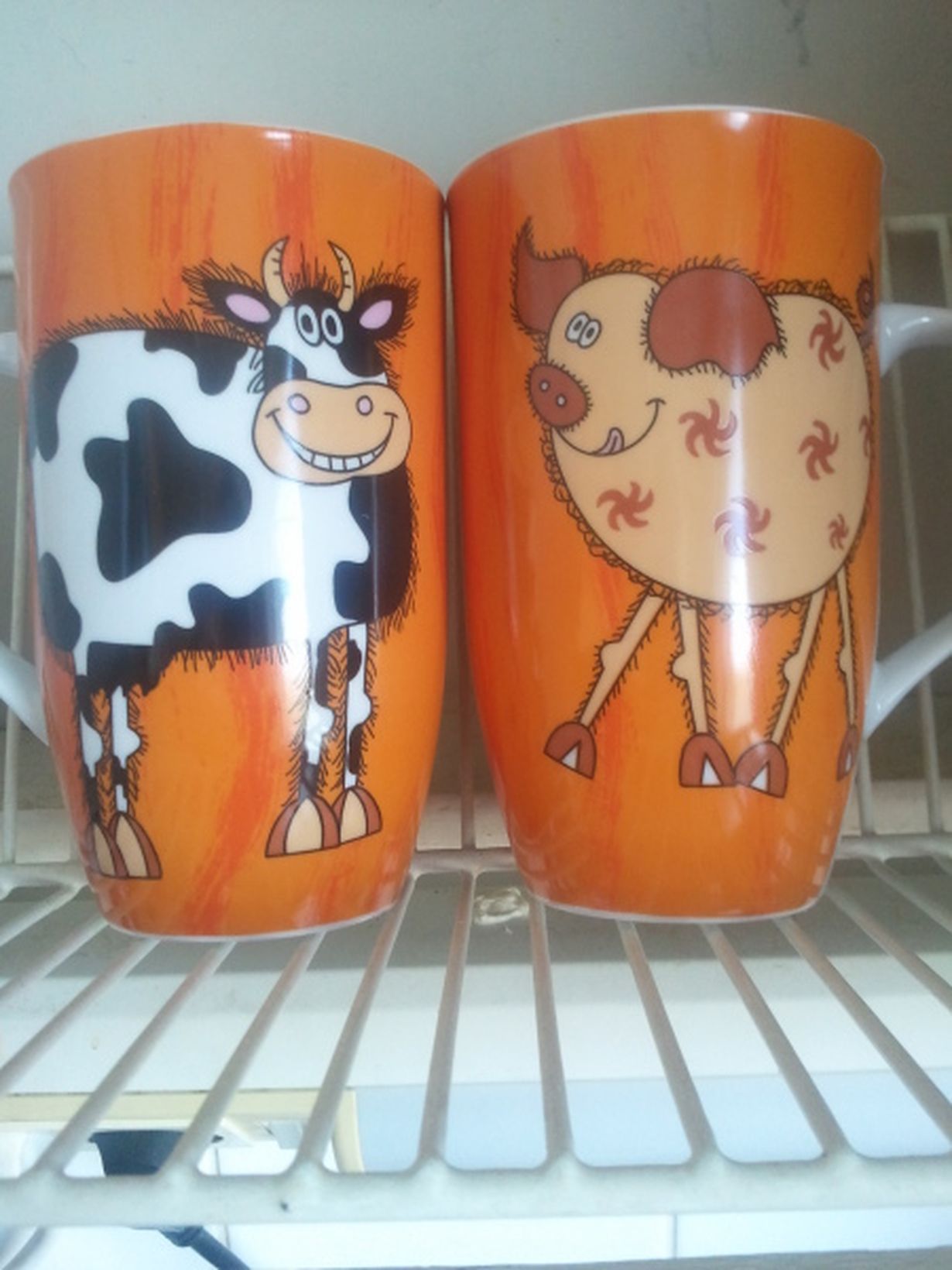 Tämä ihana arki: kahvikuppi Sialle ja lehmälle :D 13.9.2011 klo 15:48 Tässä isännän ja emännän puolenlitran motit. Mahtuu sen verran että herää ja maitoakin.