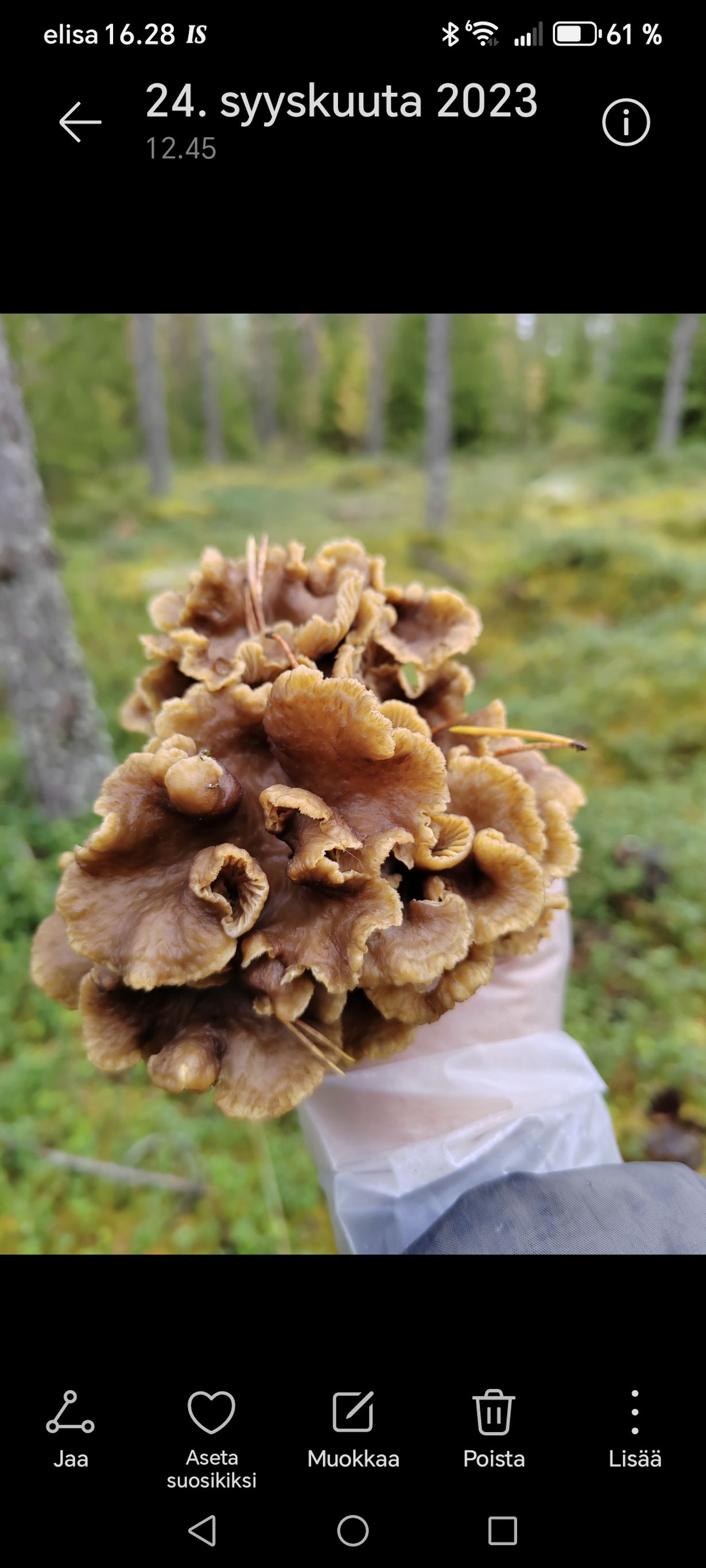 Lähetä kuvakisaan kuva sienikoristasi- voita Lapuan Kankureiden villahuopa Sienikimppu Tupu 19.8.2025 klo 16:59 Suppilovahverot metsissä asustelee
