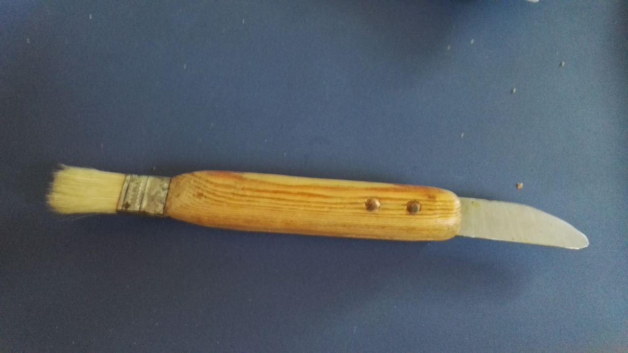 Poikani Erkka teki koulussa vuonna 1992 näin hienon sieniveitsen äitienpäivälahjaksi.