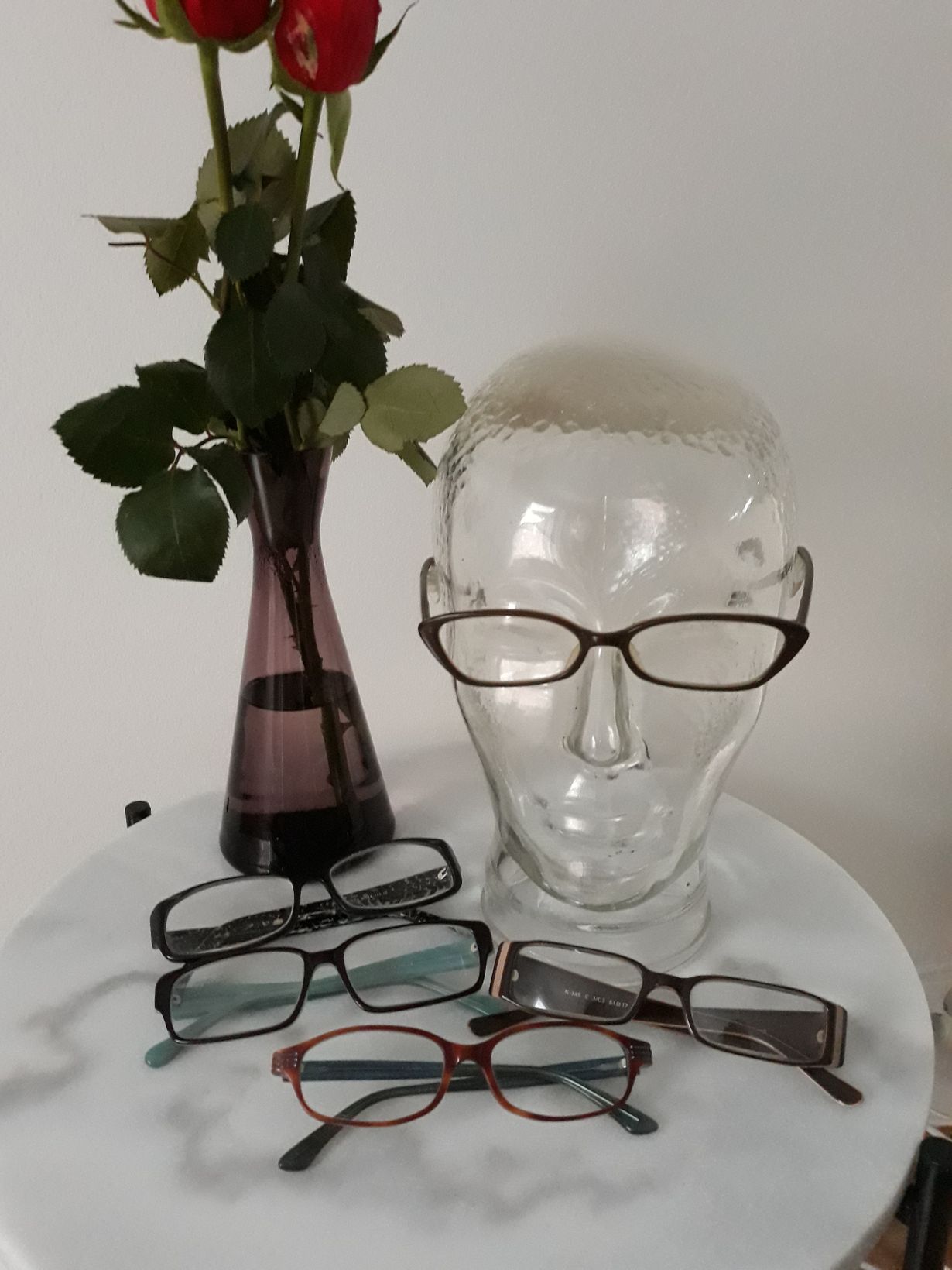 Ensimmäiset lukulasini "lasipäässä". Raili Hulkkonen valitsi ne minulle optikkoliikkeen tapahtumassa. Olen säästänyt kaikki lukulasini ja on hauska huomata miten muoti on muuttunut.