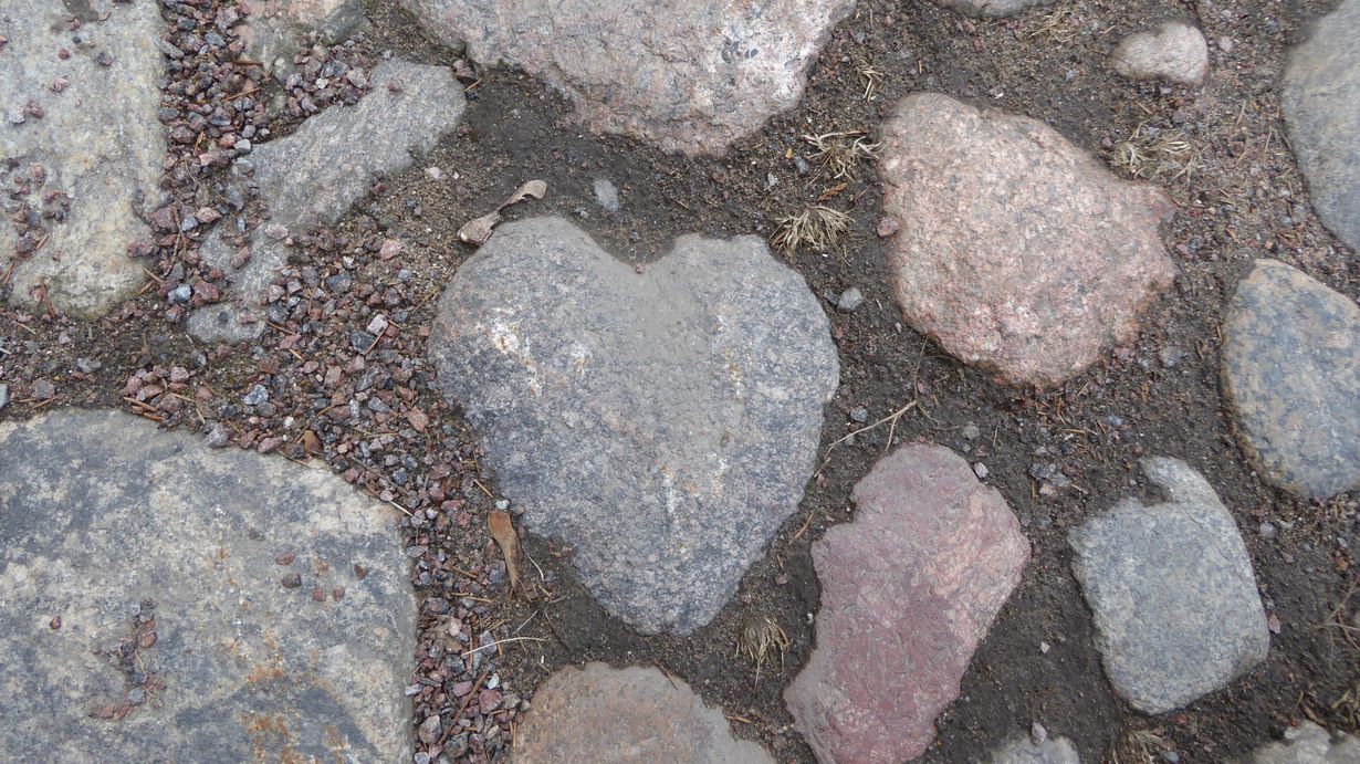 Siniharmaa kivisydän mukulakivikadulla Lappeenrannassa
