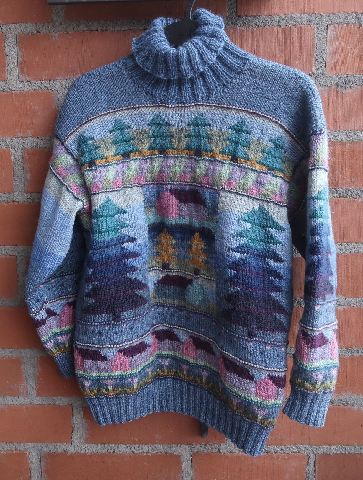 Lempipuseroni olen kutonut 1990-luvulla, mm. laiturilla lasten polskimista seuraten. Malli on Sirkka Könösen Sininen pihapuu, ja pusero on paksu ja lämmin. Tuunasin puseroon hiljattain poolokauluksen.