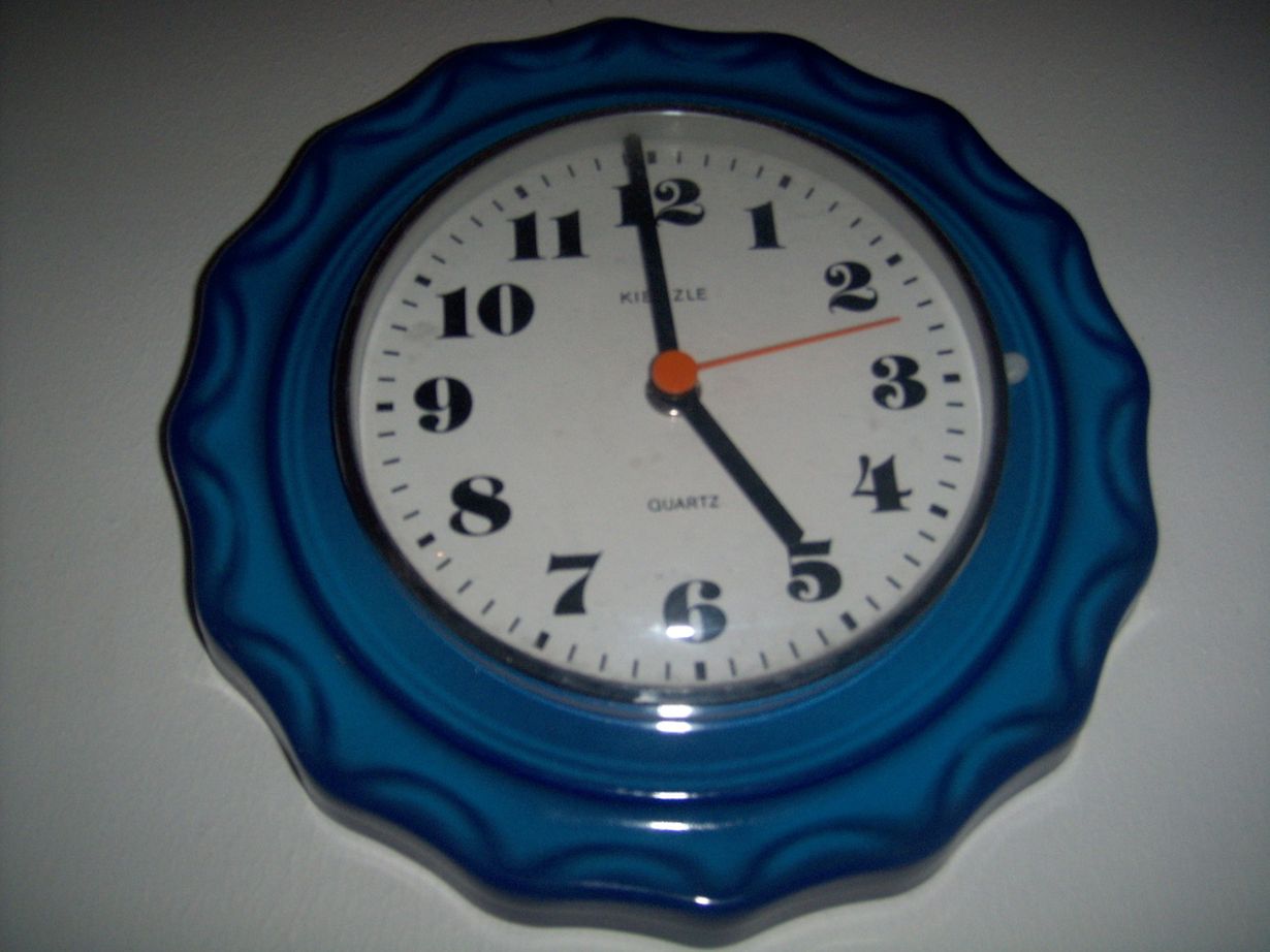 Tämän kellon olemme saaneet isältäni,joka piti kelloista ja niitä oli joka huoneessa omansa vanhempieni talossa,heidän sieltä muutettuaan palvelutaloon kelloja jaettiin tarvitseville ja sain tämän sinisen seinäkellon,kello on saksalainen Quarts-merkkinen ja materiaali on ilmeisesti savea ja siinä on edestä avattava lasikansi.Kello tuo minulle muiston isästäni ja luo tiettyä turvallisuutta ja muistoja.
