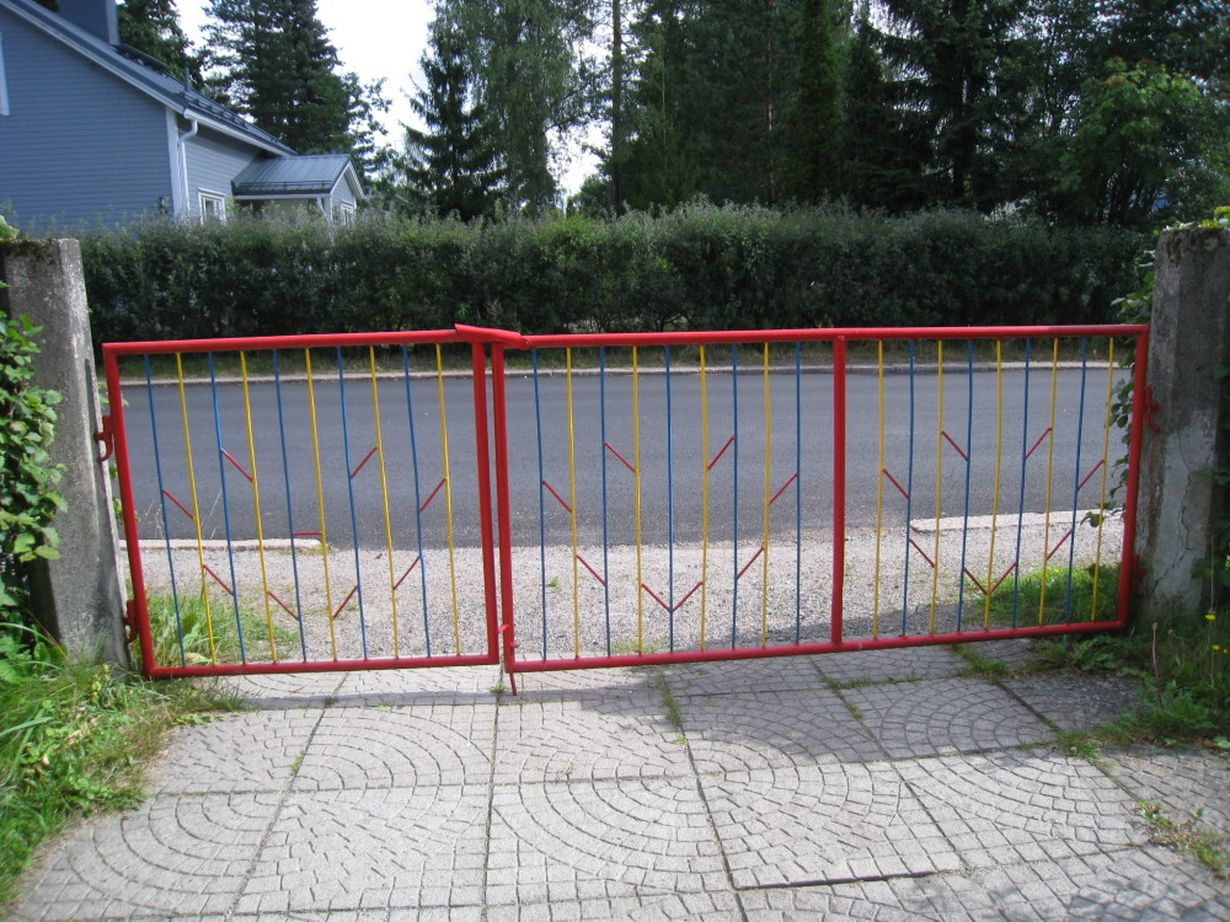 Rintamamiestaloalueella iloisen väriseksi maalattu porttimme on saanut paljon kiitosta ohikulkijoilta. Entinen portti oli hailakan vihreä, mutta 8-vuotias tytär suunnitteli värityksen uusiksi.
