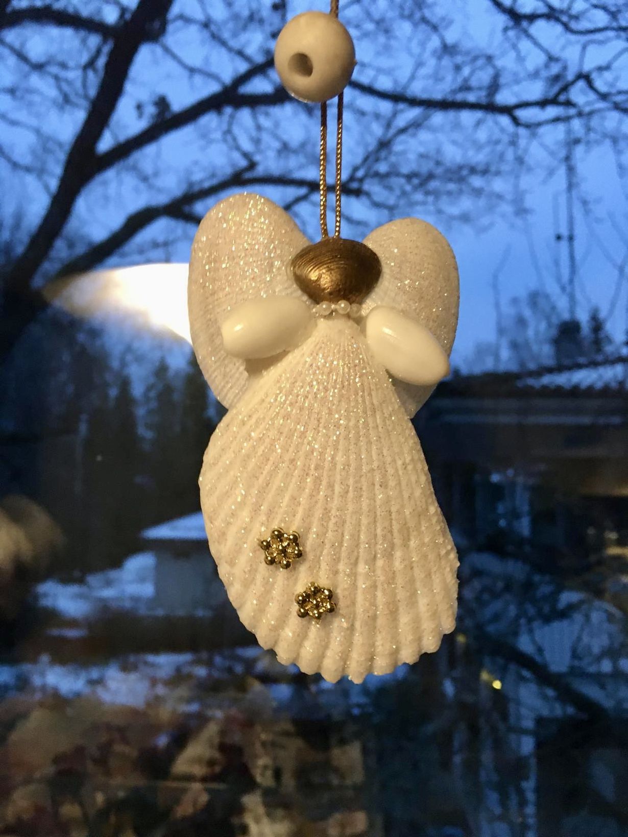 Karibian meren risteilyllä mieheni työnsi pyörätuolia. Sisareni oli saanut ALS-diagnoosin pari vuotta aiemmin. Barbados-saaren joulumarkkinoilla oli simpukoista tehty jouluenkeli jonka sisareni halusi antaa minulle. Nyt ikkunassamme Eeva-enkeli on loistanut jo 12 joulunaikaa.