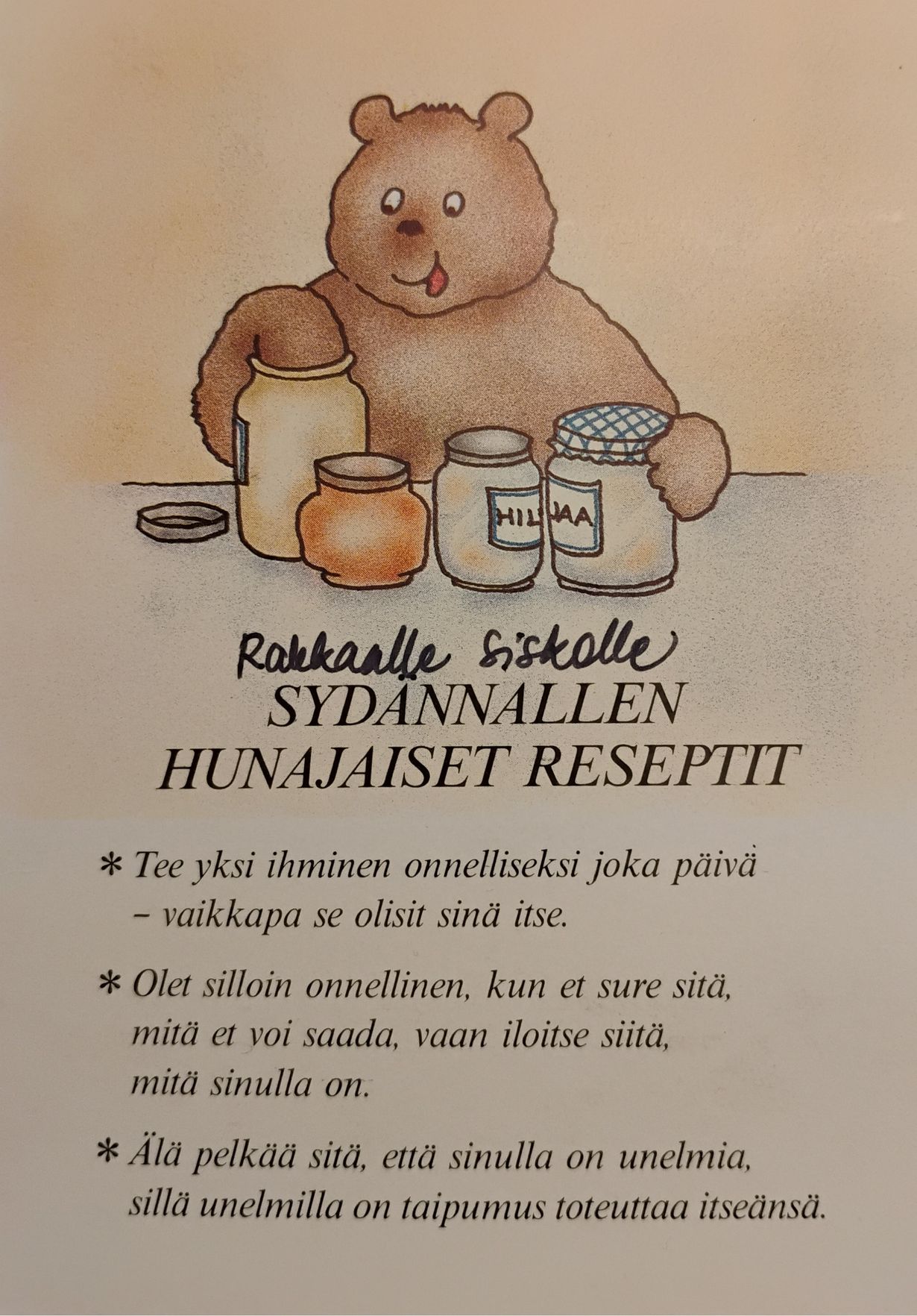 Olen jostain syystä säästänyt siskoni minulle 50-vuotissyntymäpäiväni kunniaksi lähettämän postikortin. Tuosta syntymäpäivästä on jo yli 10 vuotta aikaa.