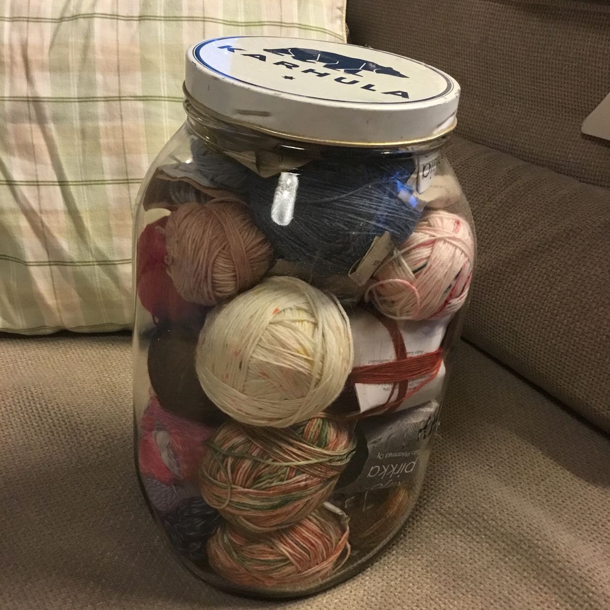Sain serkulta vanhan lasipurkin jämälankakeriä varten, kauniita purkissa.
