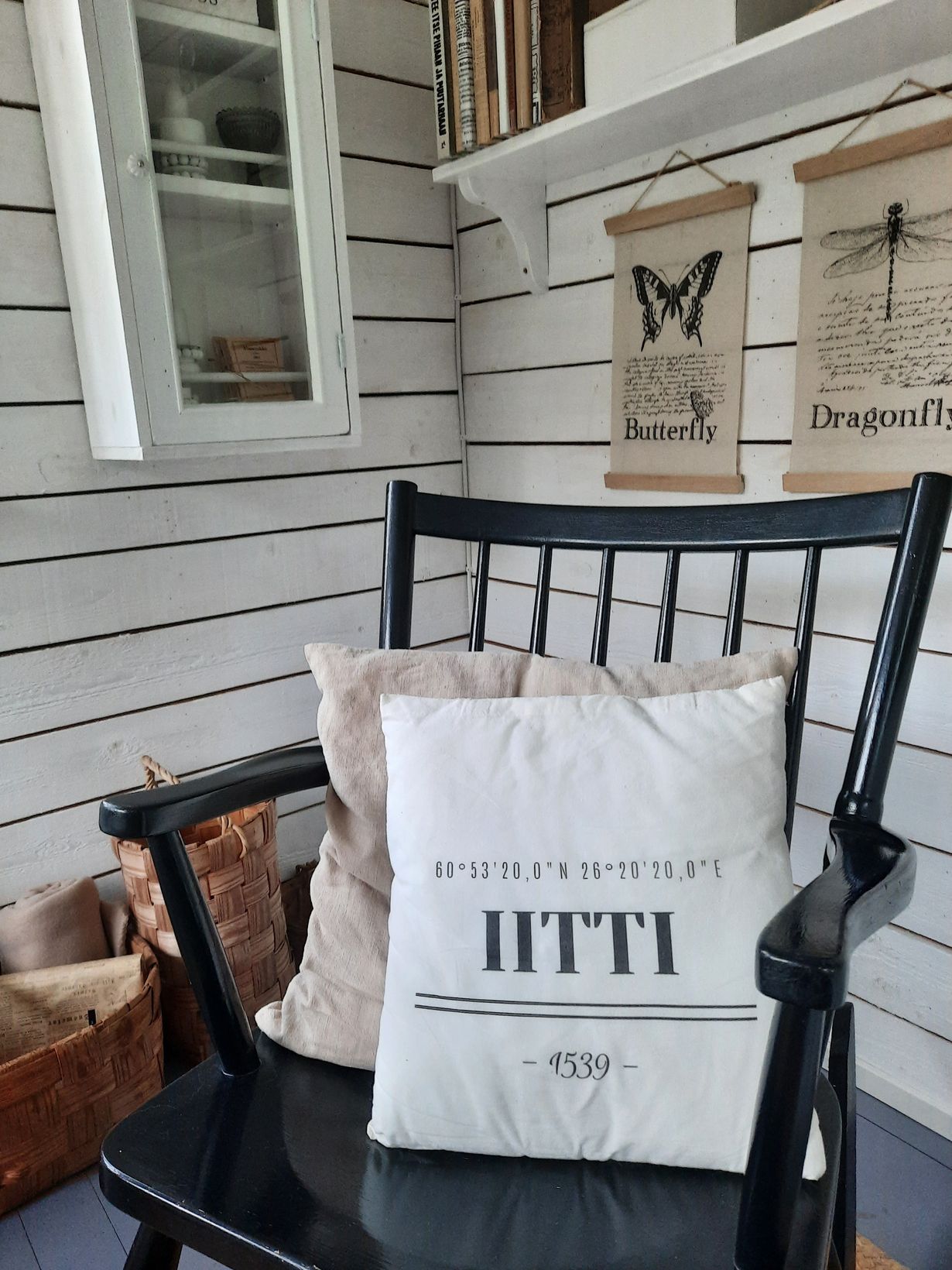 Lähetä kuvakisaan kuva sisustustyynystäsi - voita Familonin peitto ja tyyny! Sisustustyyny Mökkeilijä. Iitti 22.7.2022 klo 5:41 Tämä mökkipaikkakunnan maatilatorilta ostettu tyyny joka alunperin oli kassi somistaa mökkimme kuistia.