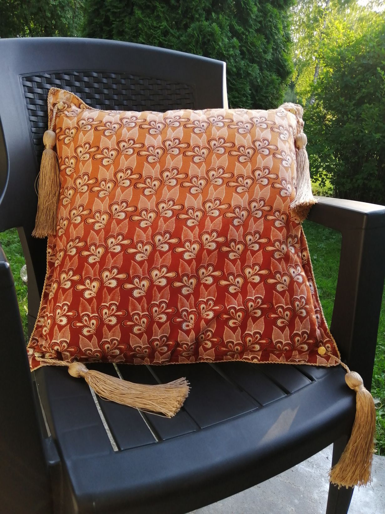 Äitini yllätti minut tällä tekemällään tyynyllä kankaasta jonka joskus ostin ja lahjoitin hänelle, kun en itse keksinytkään mitä olisin siitä tehnyt. Äitini on taitava käsityöläinen ja tekee vaikka mitä.
