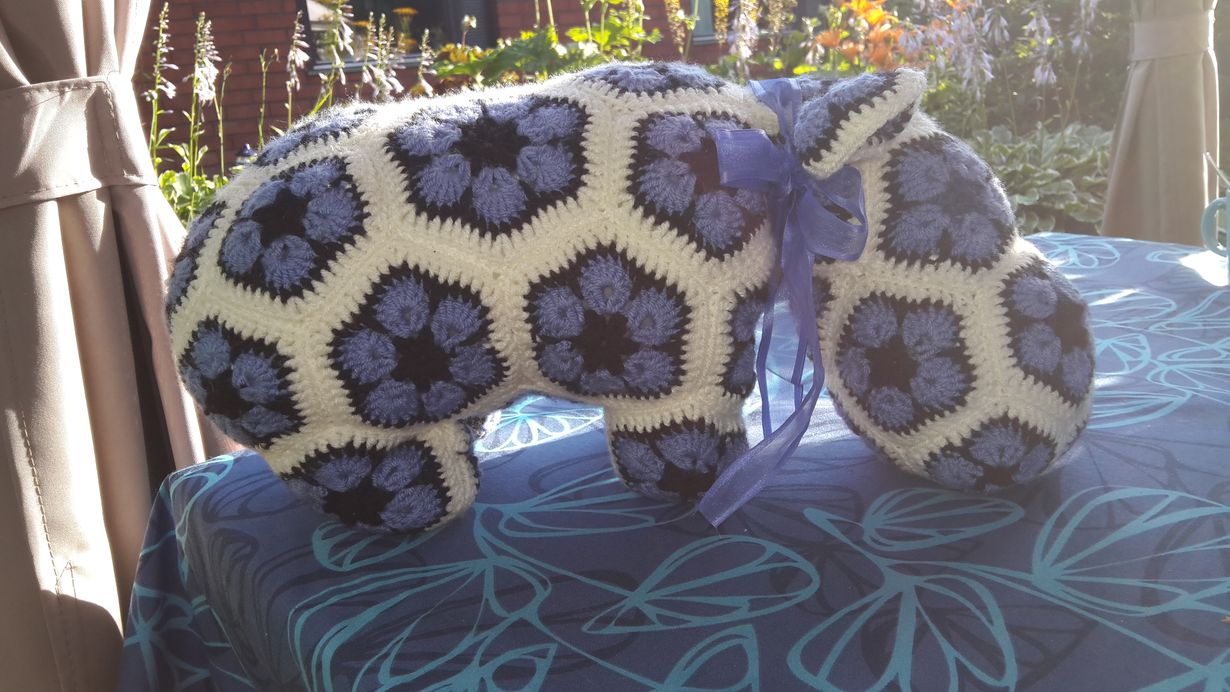 Hippi saapui meille kylmänä myöhäissyksyiltana.miniä oli koiriensa ulkoilutuksesta kiitokseksi virkannut afrikankukka tyynyn. Ovella oli kylmissäänraukka kun saimme yllätys tx että ovella afrikkalainen Löytöeläinapu odottaa pääsyä uuteen kotiin. Hmm.... no siellä oli lempparivärinen hippokaveri.ihana niskatuki soffalla