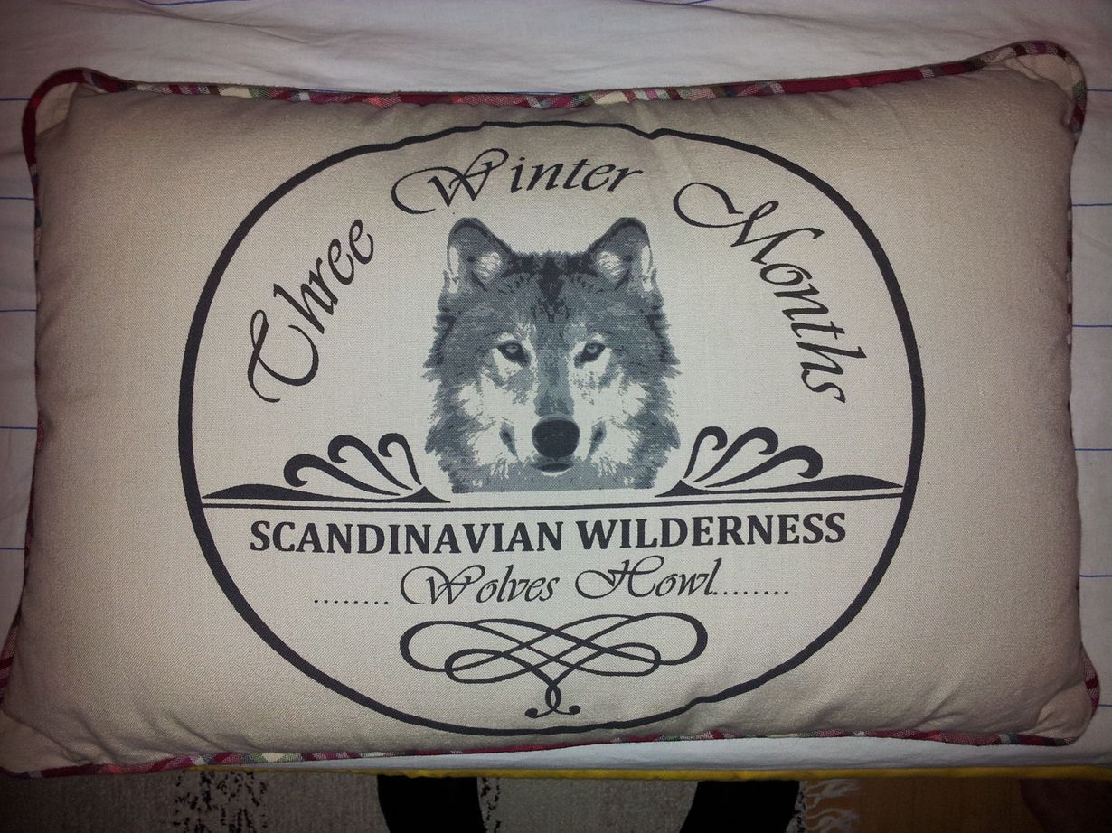 Tykkään kaikista susi jutuista ylipaljon ja ihastuin heti ensi näkemältä tähän tyynyyn.Tyyny on sopivan jämäkkä pään aluseksi ja ihanan iso vaikka halittavaksi.