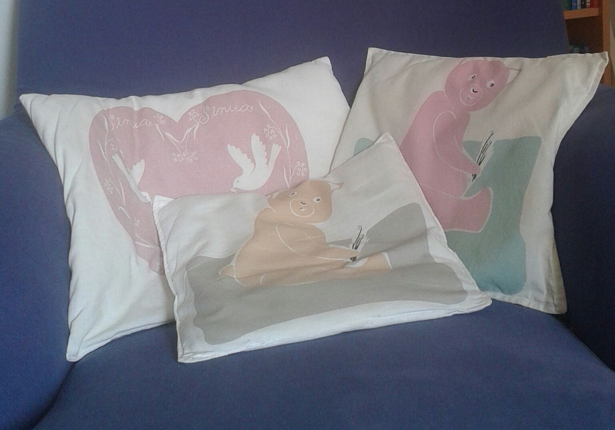 Kuvaa sohvatyynysi! Voit voittaa Nespresso-kahvikoneen Sohvatyynyni Anna-Maria 27.7.2016 klo 12:09 Meidän sisaruskolmikon ensityynyt, joista vanhin 37 vuoden takaa. Äitimme tekemiä ja yhä käytössä.