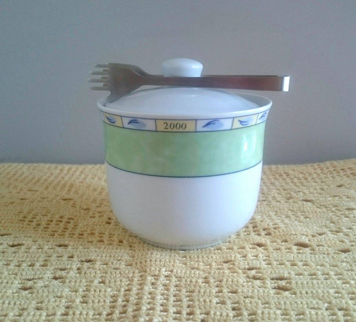 Greenwich Meridian millenium 2000 sokeriastia oli aikoinaan K-kaupan keräilytuote. Silloin tuli hankittua melkein koko astiasto. Väri on kauniin keväinen.