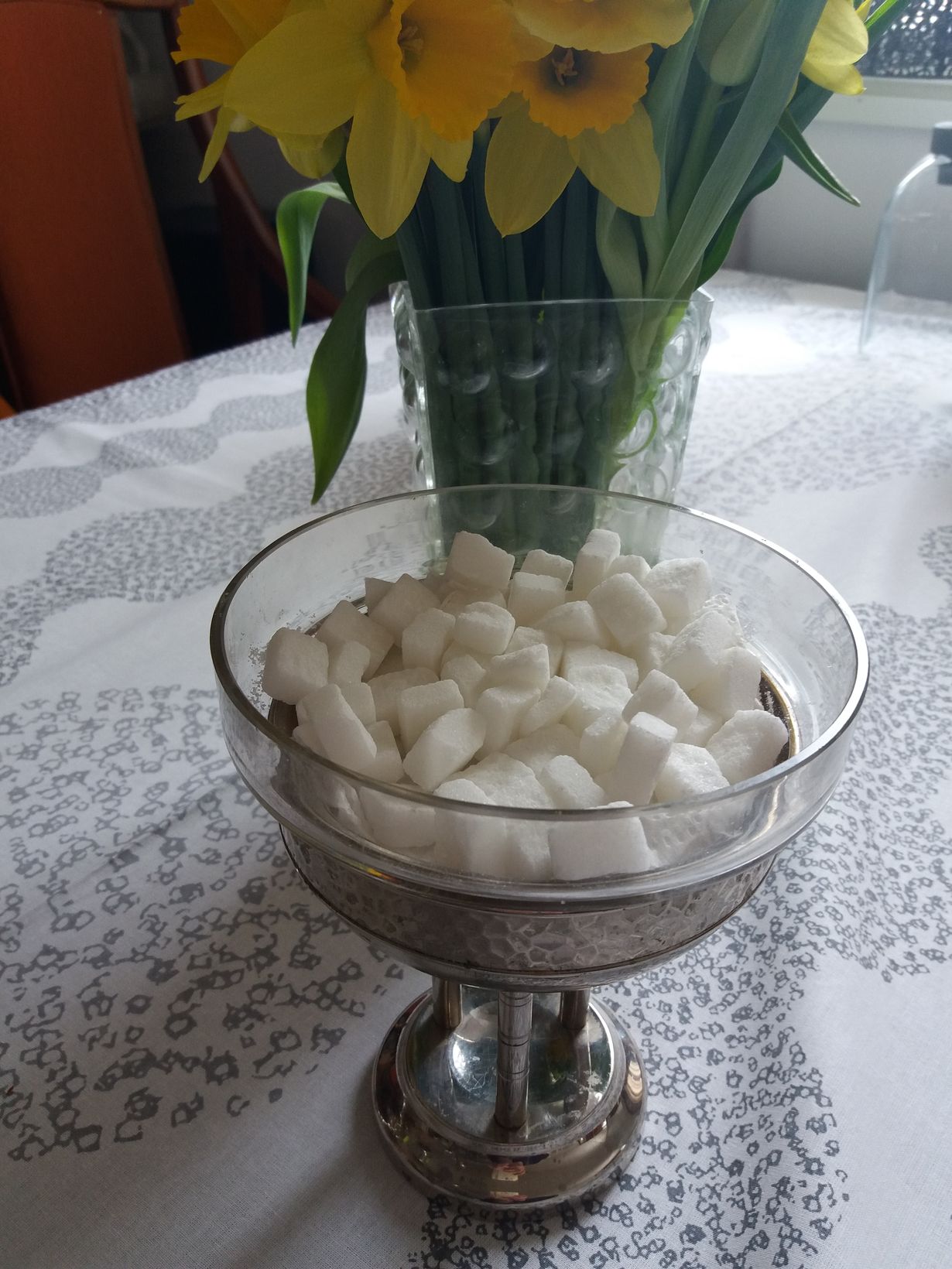 Tämä sokeriastia on ollut meillä iät ja ajat. Tämä on ollut isälläni jo hänen lapsuudessaan, eli ainkin 40-luvulta on sokeriastia ollut meidän perheessä. Itse muistan kuin lapsena ripottelin sokeria tästä astiasta aamumurojeni päälle. Kuinka moni onkaan tästä astiasta ottanut sokeria.