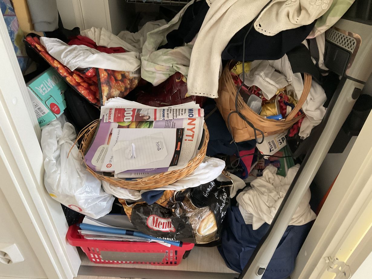 Vaatehuoneeseeni tunnen kaiken ylimääräisen vierailun ajaksi. Vieraitten lähdettyä tavarat vaatehuoneestani päätyvät entisille paikoilleen ja yleisilme ei ole lainkaan huoliteltu.