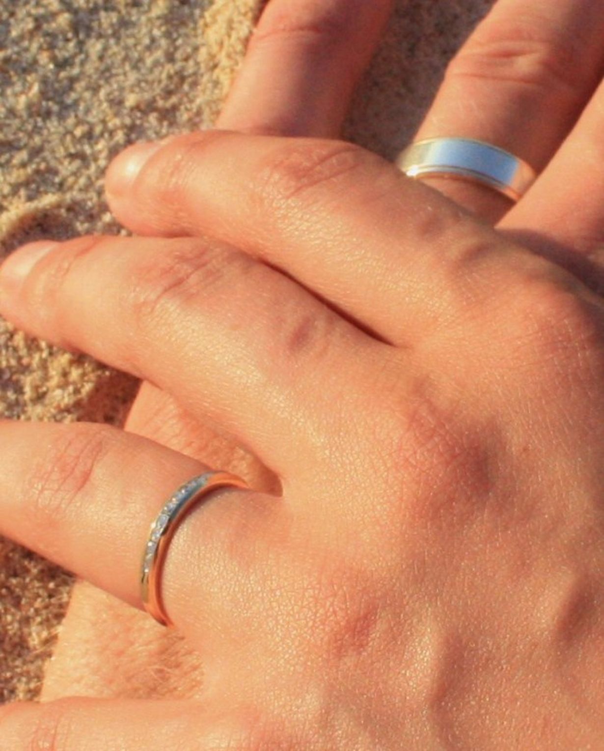 Poikaystäväni kosi syksyllä Uudessa-Seelannissa ollessamme maailmanympärimatkalla. Sormukset valittiin nopeasti Aucklandin lentokentältä, kun täydelliset löytyi. Uudessa-Seelannissa kihlasormus tulee vain naiselle, joten ostoksilla oli selittämistä, että sormus tarvitaan molemmille. Seuraava kohde oli Fidzi, missä kuva on otettu.