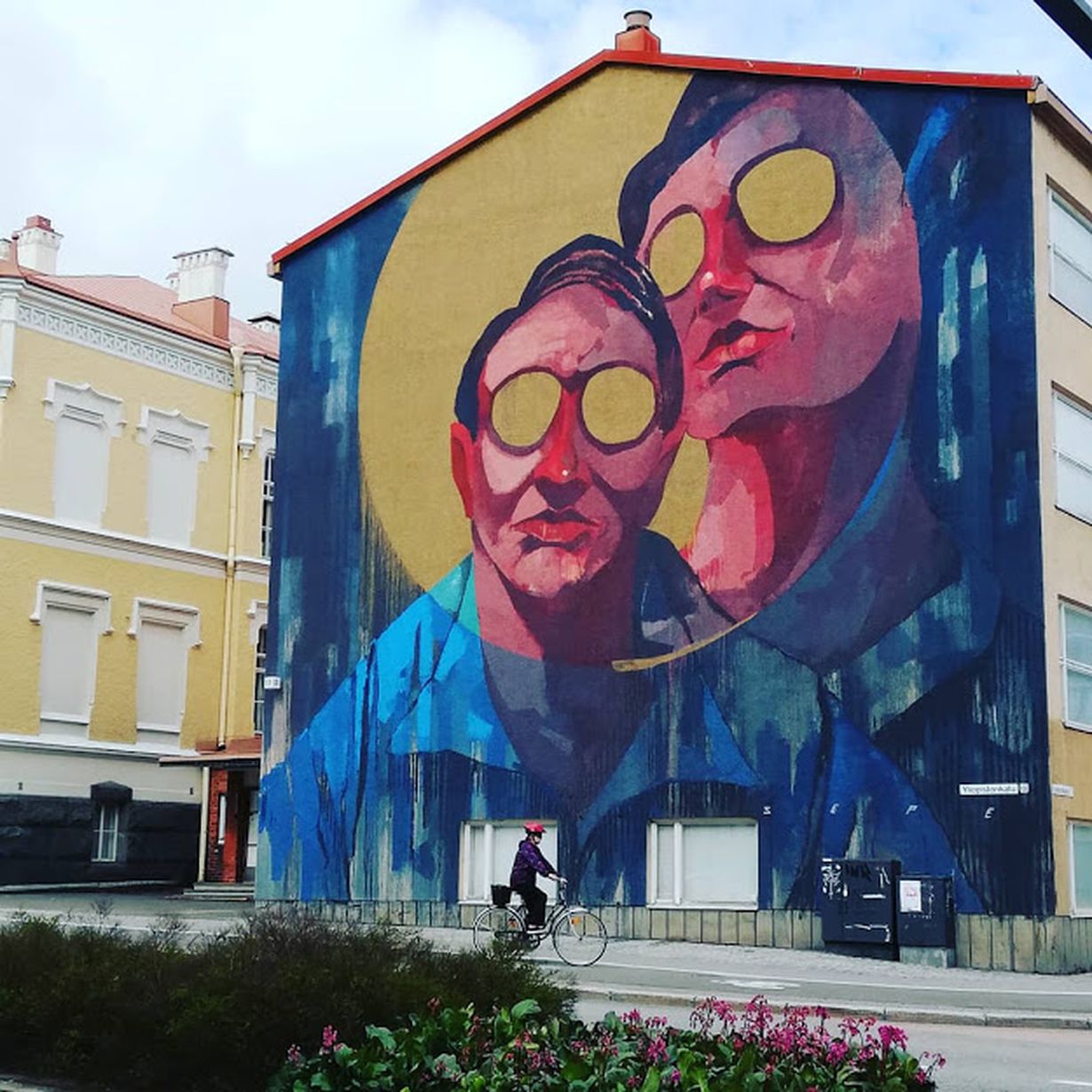 Keski-Suomesta löytyy upeita muraaleja kulkijoita ilostuttamassa. Tämä väriläiskä löytyy keskeisen kadun varrelta heti torin vierestä.