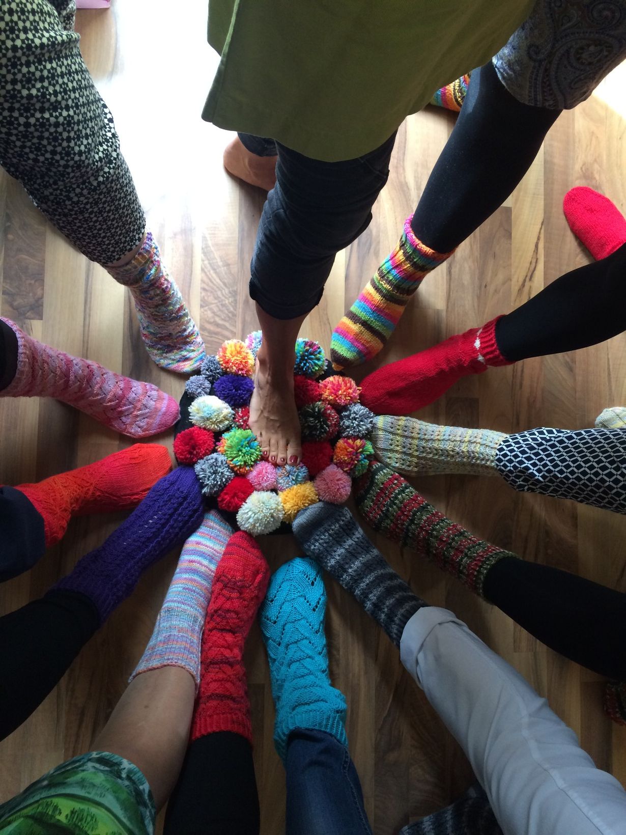 Jäin kesällä eläkkeelle 21 vuoden työrupeaman jälkeen. Kudoin kaikille työkavereilleni sukat läksiäislahjaksi. Työkaveri Paula, joka oli minut saanut vuosien jälkeen kutomisesta innostumaan, ei sukkia tarvinnut, koska hän tekee paljon upeampia kuin minä... Hänelle tein sitten Kodin Kuvalehden ohjeen mukaan tupsutyynyn, johon käytin samoja lankoja kuin sukkiin. Tuli hieno, vaikka itse sanonkin - ja mieluinen!