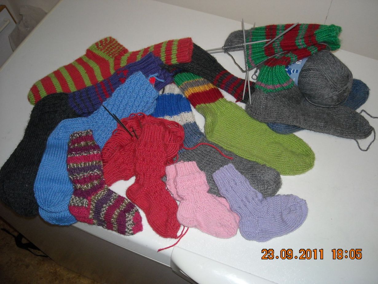 Tämä ihana arki: villasukat Sukkiani 27.9.2011 klo 8:07 Iltojen ja sadepäivien iloksi sukkia,joita jaetaan niitä tarvitseville