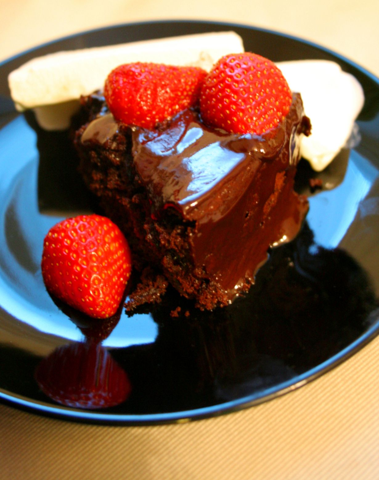 Pojan synttäreille valmistamani suklaakakku. Nautittiin jäätelön ja mansikoiden kera. Salainen resepti on kehittynyt jostain alunperin netin uumenista löytämästäni ohjeesta.