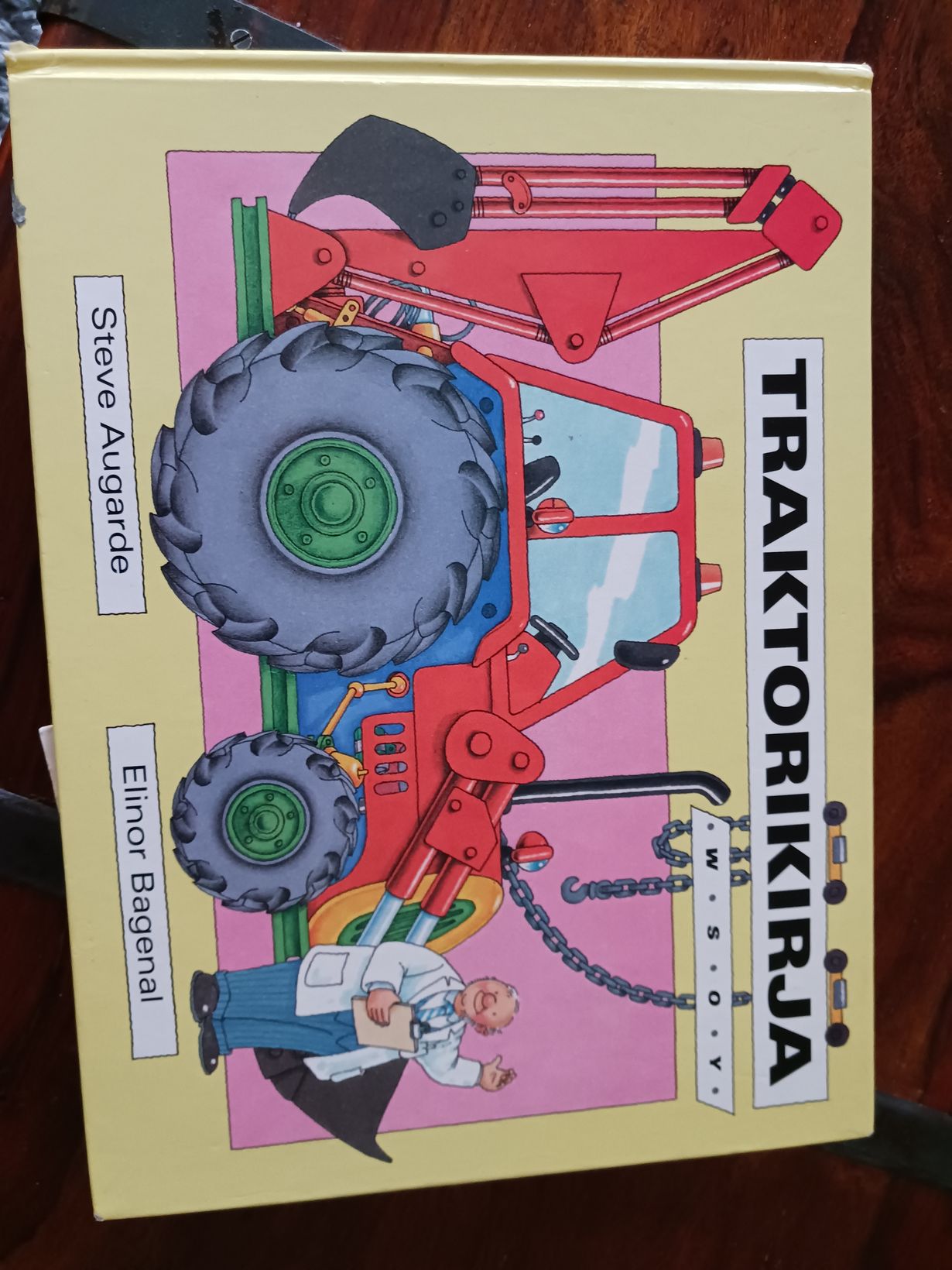 Tämä traktorikirja on lempikirjani. Tätä luettiin ja selailtiin aikoinaan omien lasten kanssa ja nyt lastenlasten kanssa. Sivut ovat rullautuneet jostain kohdin ja teipattu mutta aina se on ykkönen meillä.