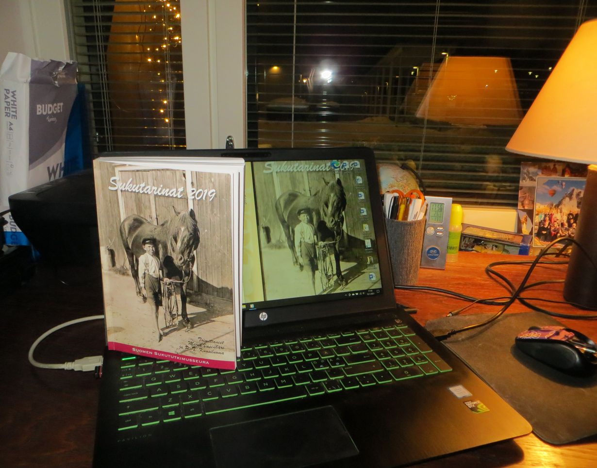 Postiluukustani kolahti lähes viisisataasivuinen Suomen Sukututkimusseuran toimittama kirja, Sukutarinat 2019. Siinä on myös minun kolme tarinaani: Käsmänjoen sielu, Möyrytautiset ja vaaleanpunainen Volga sekä Vika kyyti. Tuossa riittää lukemista moneksi illaksi.