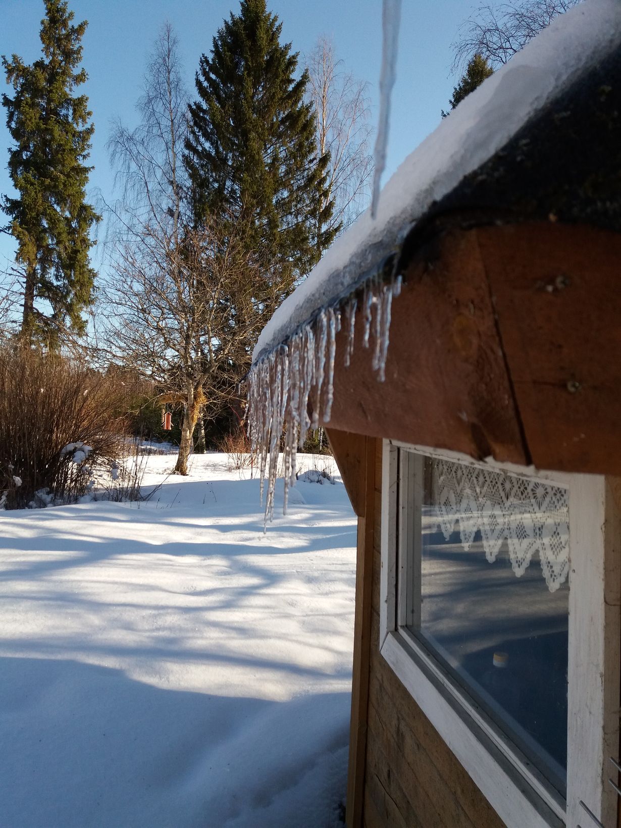 Jääpuikot alkavat sulaa maaliskuun auringossa, kodalla nautitaan pannukahvit, pihan pikkulintujen tankatessa omia eväitään...