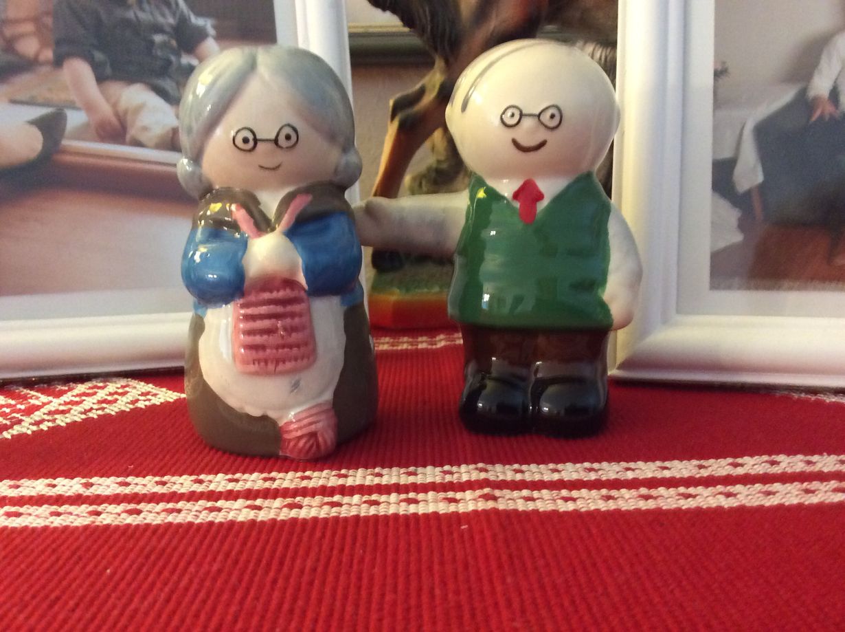 Kun ensimmäinen lapsenlapsemme syntyi elokuussa 2014, saimme nämä sirottimet enoltani ja hänen ystävältään. Meistä ne olivat niin kivan näköisiä, että emme ottaneet niitä käyttöön , vaan sijoitamme ne piirongin päälle, mihin ympärille on pikkuhiljaa kerääntynyt lisää lastenlasten kuvia.