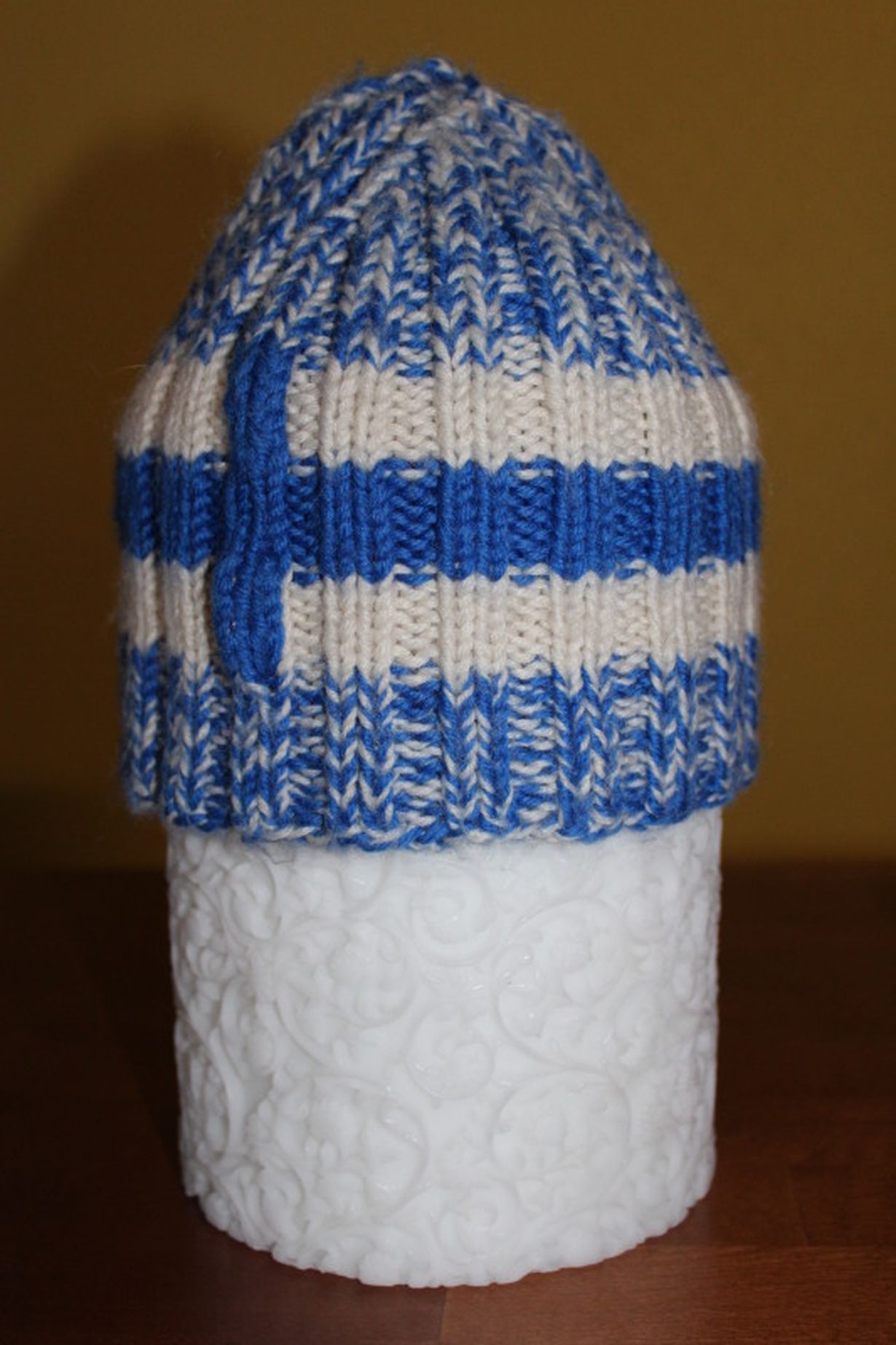 Ystäväni toimii mäkihypyn kansainvälisenä tuomarina. Hän neuloo usein tuomaritornissa kilpailun väliaikoina. Tämä "suomi-pipo" syntyi kuusi vuotta sitten minulle lahjaksi ja on edelleen suosikki-lämmittäjäni=)