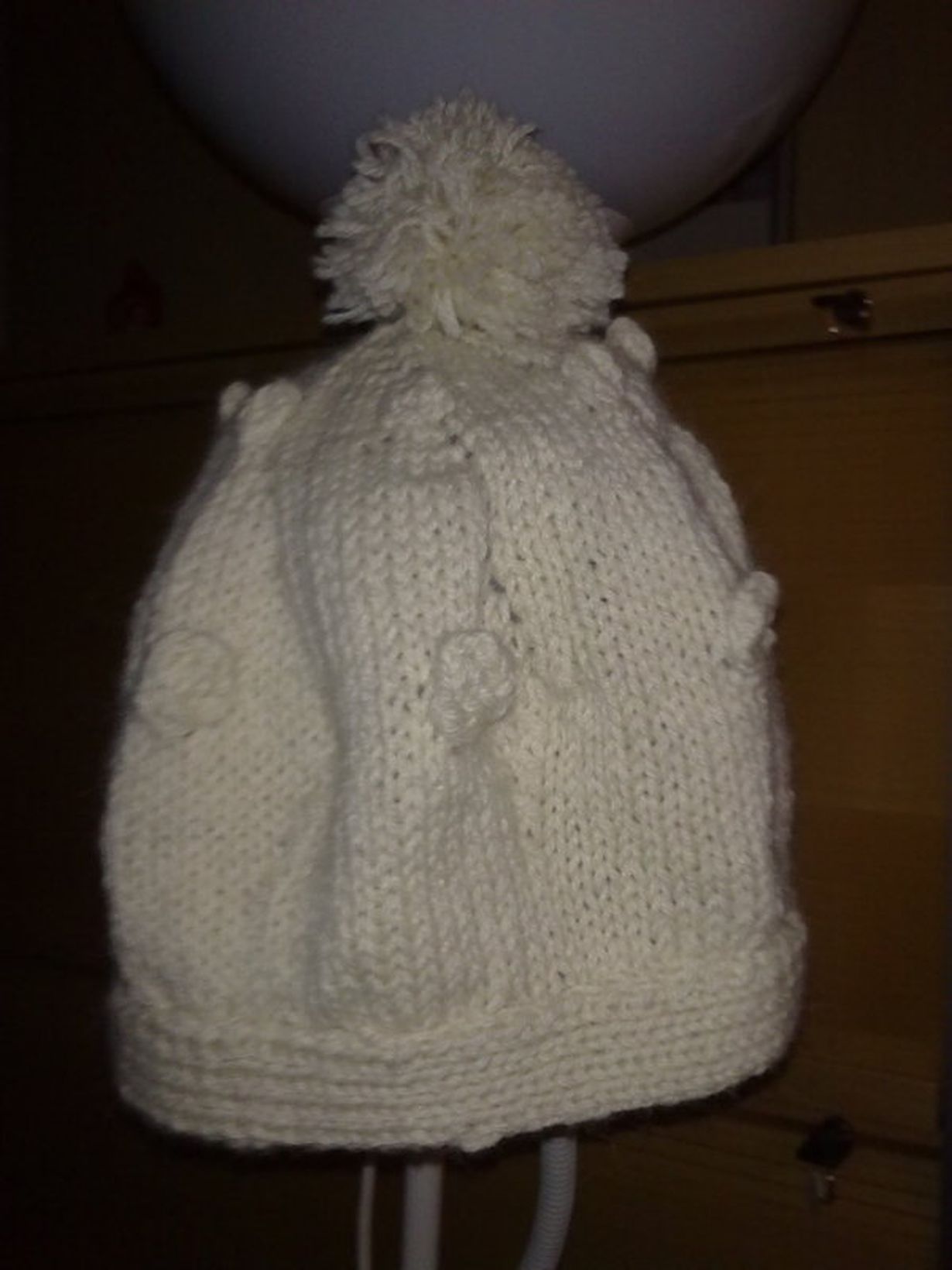 Mutta kyllähän sieltä löytyi jo vuosiasitten kutomani pipo, joka sattuu olemaan tämän talven muotiakin eli tupsu pään päällä.
