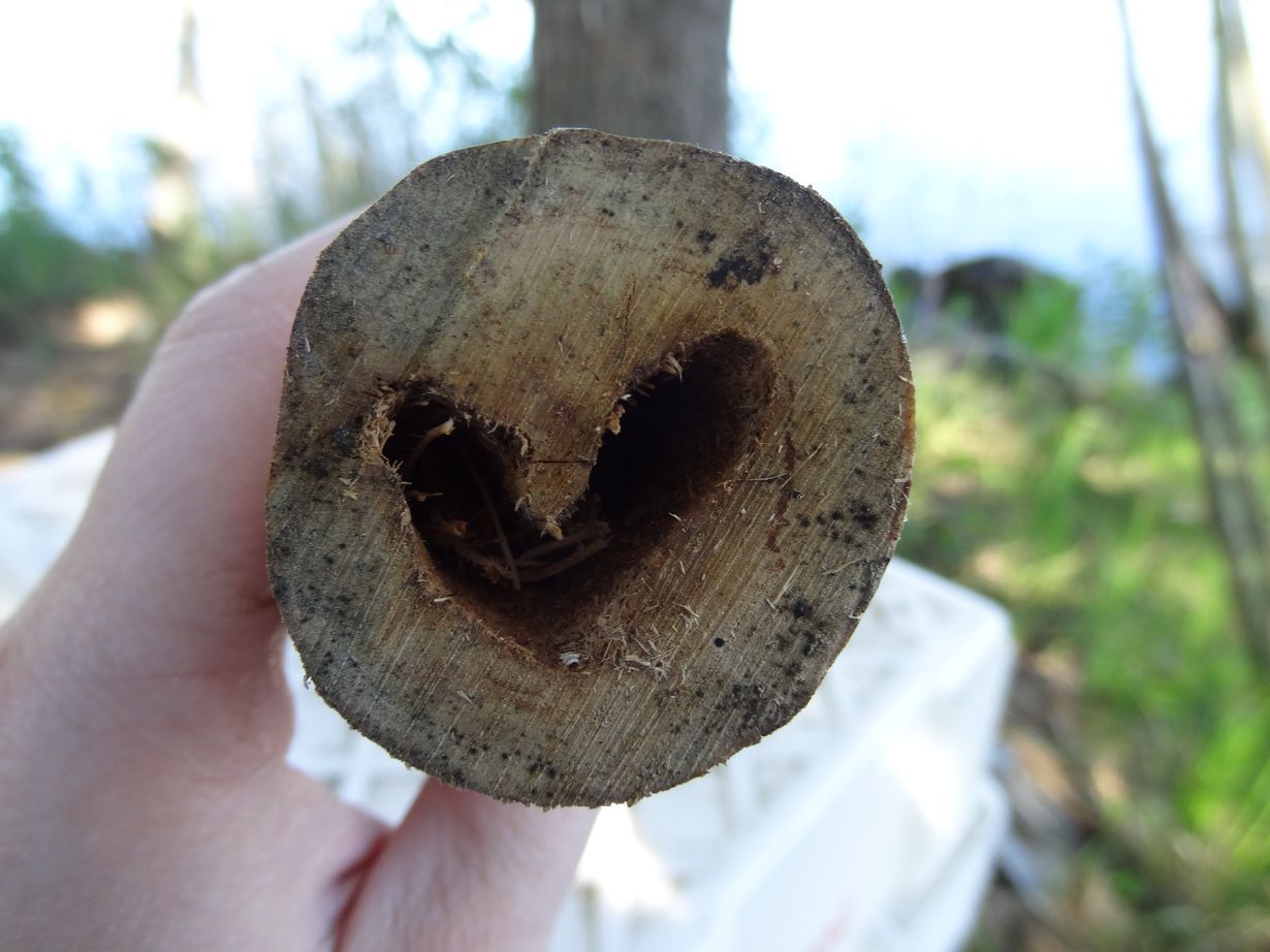 Mieheni teki mökillä kalantainnutuskalikan veneeseen ja kalikan toiseen päähän olikin luonto ( eli nähdäkseni muurahaiset ) muovannut sydämenmuotoisen kolon. Meillä siis kalat tainnutetaan rakkaudella :).